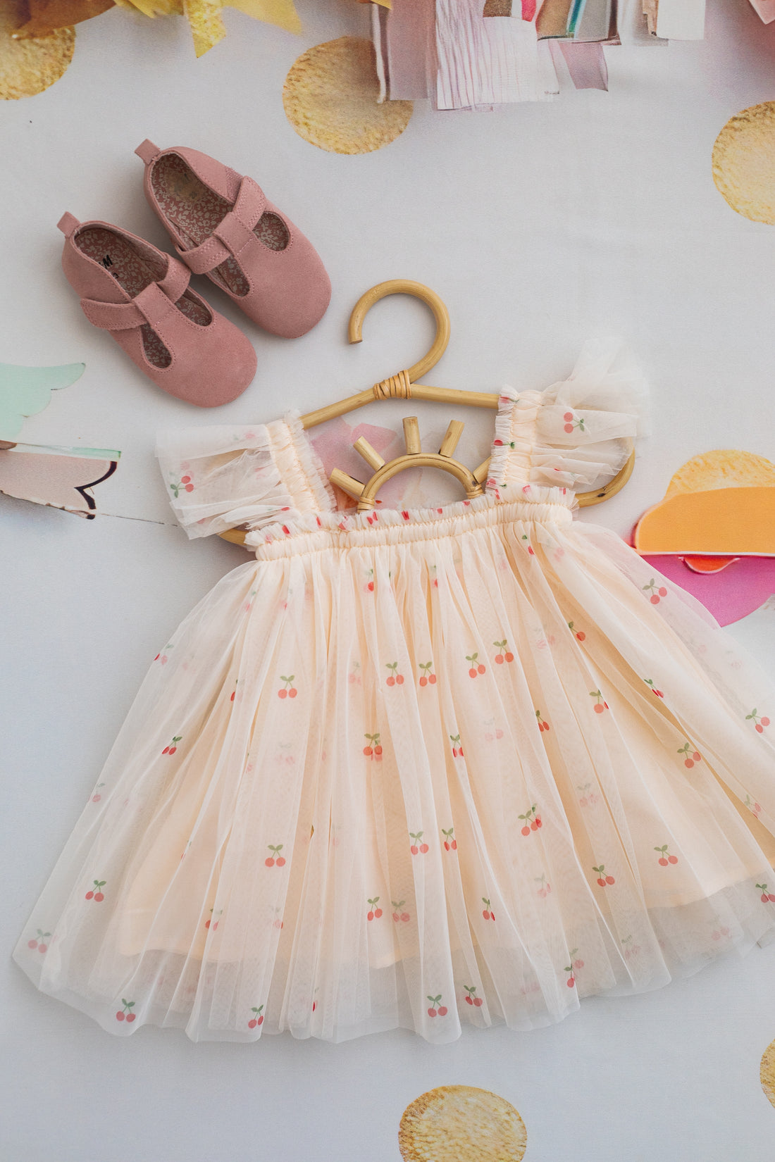 Kiraz Baskili Lastikli Askili Tul Elbise