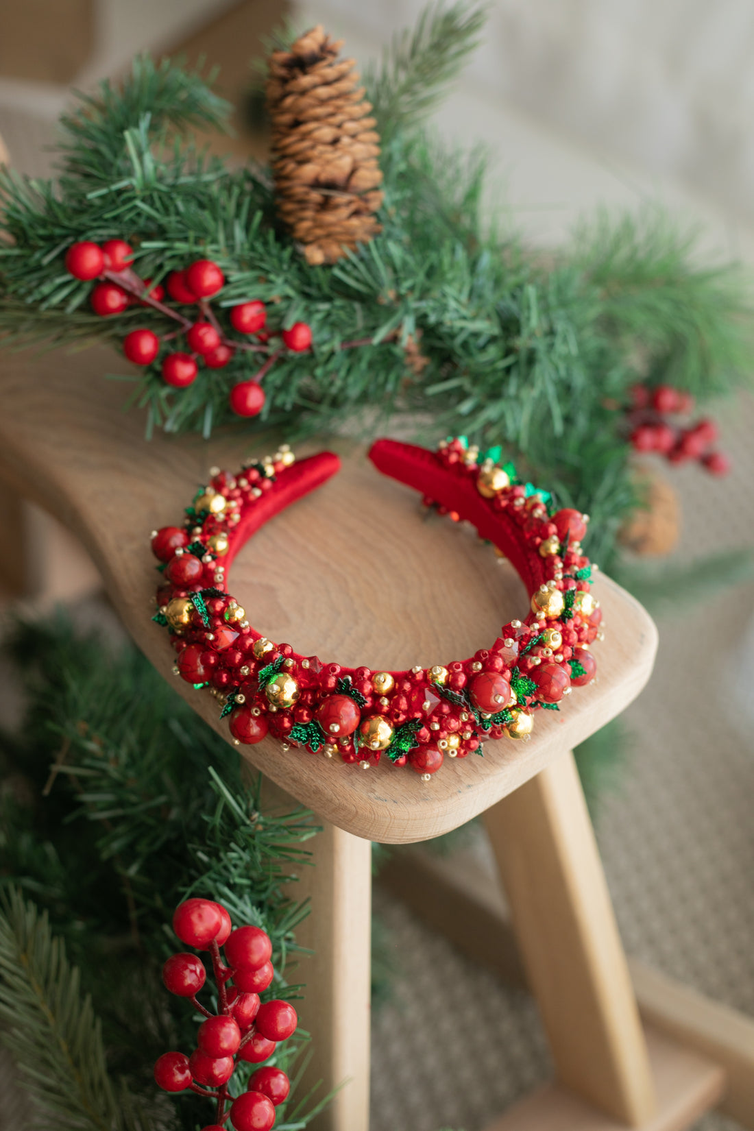 Doğanın büyüsünü saçlarınıza taşıyan Keçe Mantar Figürlü El İşi Boncuk İşlemeli Taç, tamamen el yapımı...