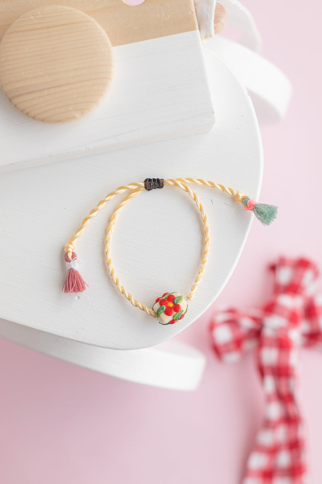 Kırmızı Çiçek Figürlü Murano Cam Boncuk Sargılı İp Bileklik