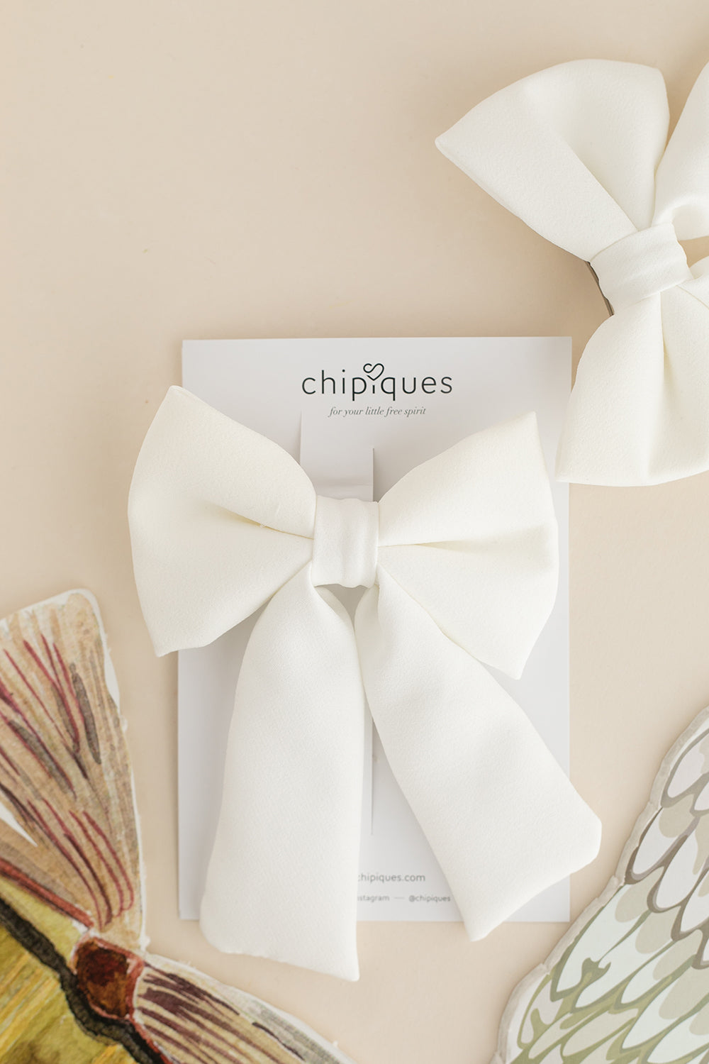 Zarif tasarımıyla dikkat çeken krem rengi kuyruklu balerin fiyonk otomatik klips toka, saçlara masalsı bir...
