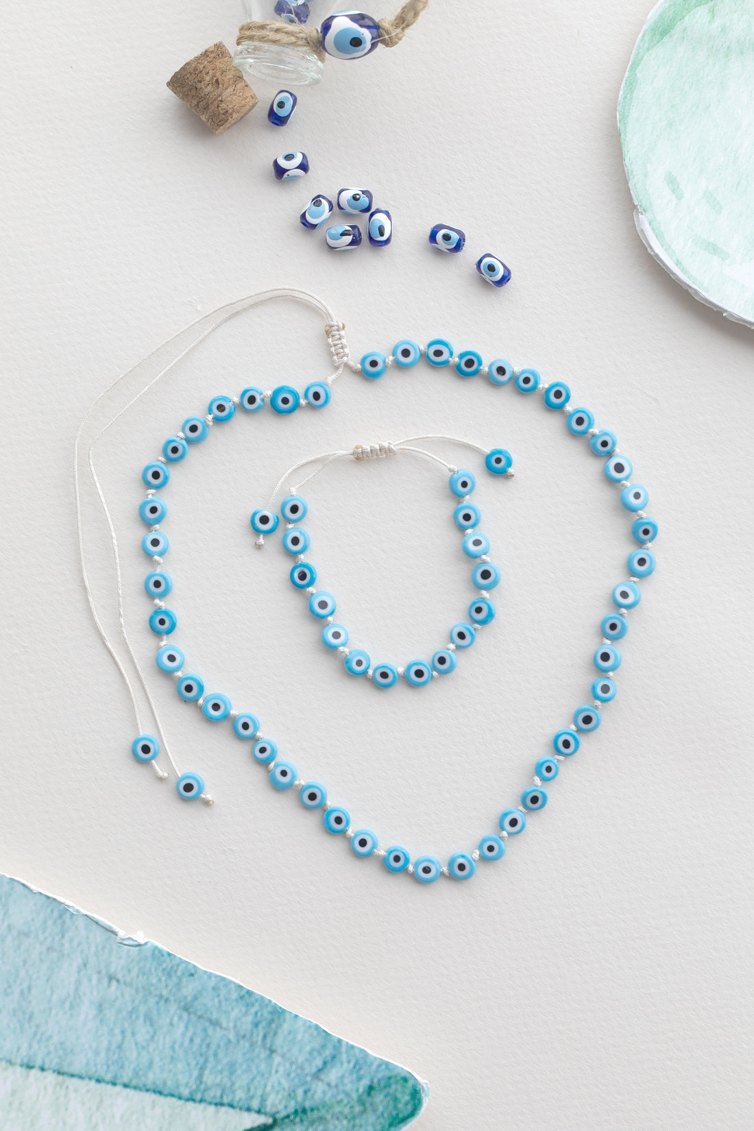 Mavi Cam Nazar Boncuklu Bileklik Set