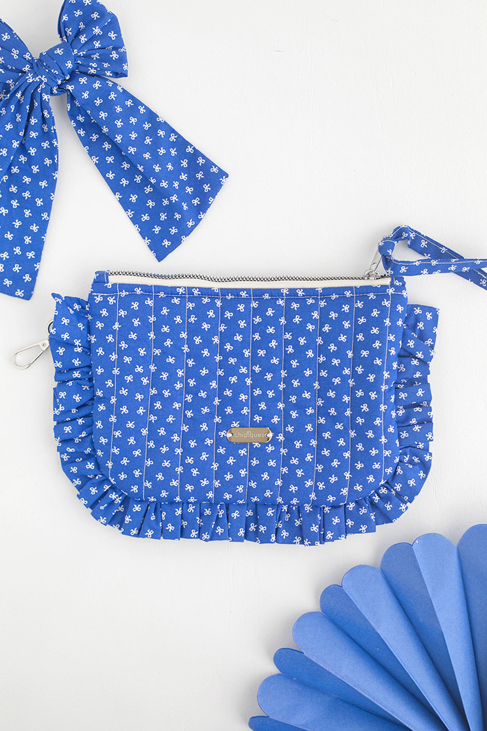 Mavi Mini Fiyonk Desenli Fırfırlı Fermuarlı Kapitone Çanta
