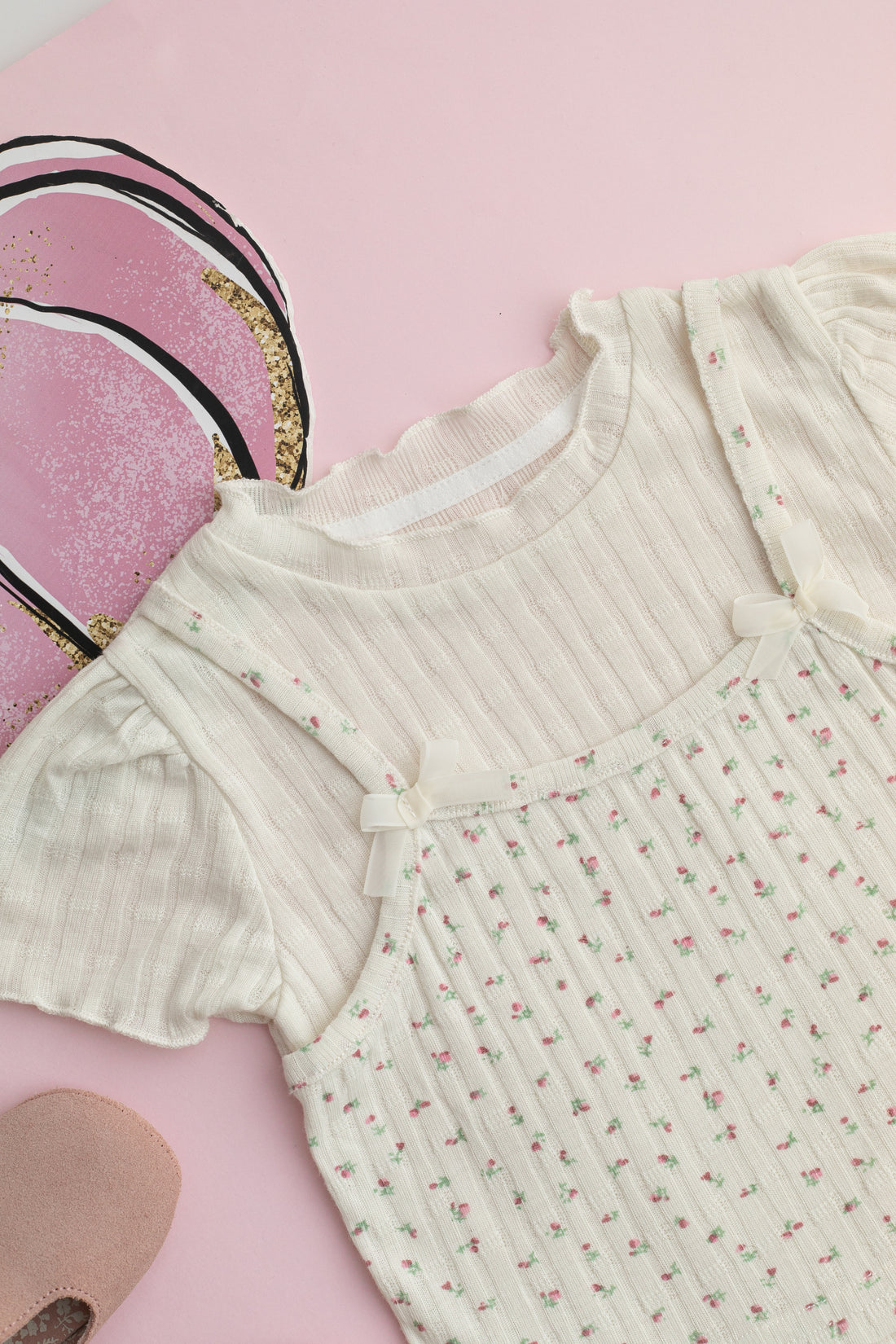 Mini Floral Desenli 2'li Birleşik Atlet Tisort