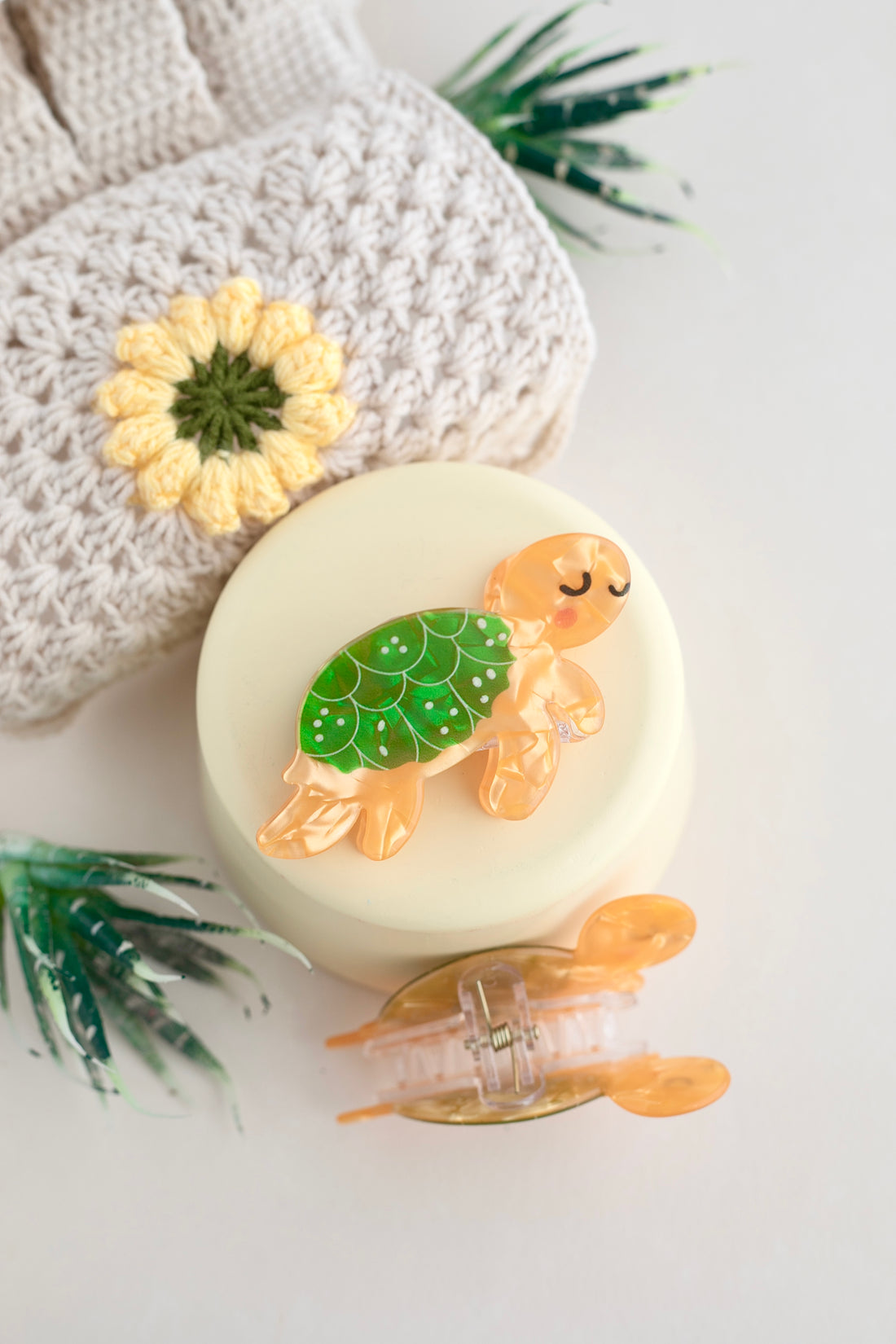 Toka genişliği: 8-10 cm Mini kaplumbağa figürlü, el boyaması detaylara sahip ithal kemik mandal toka....