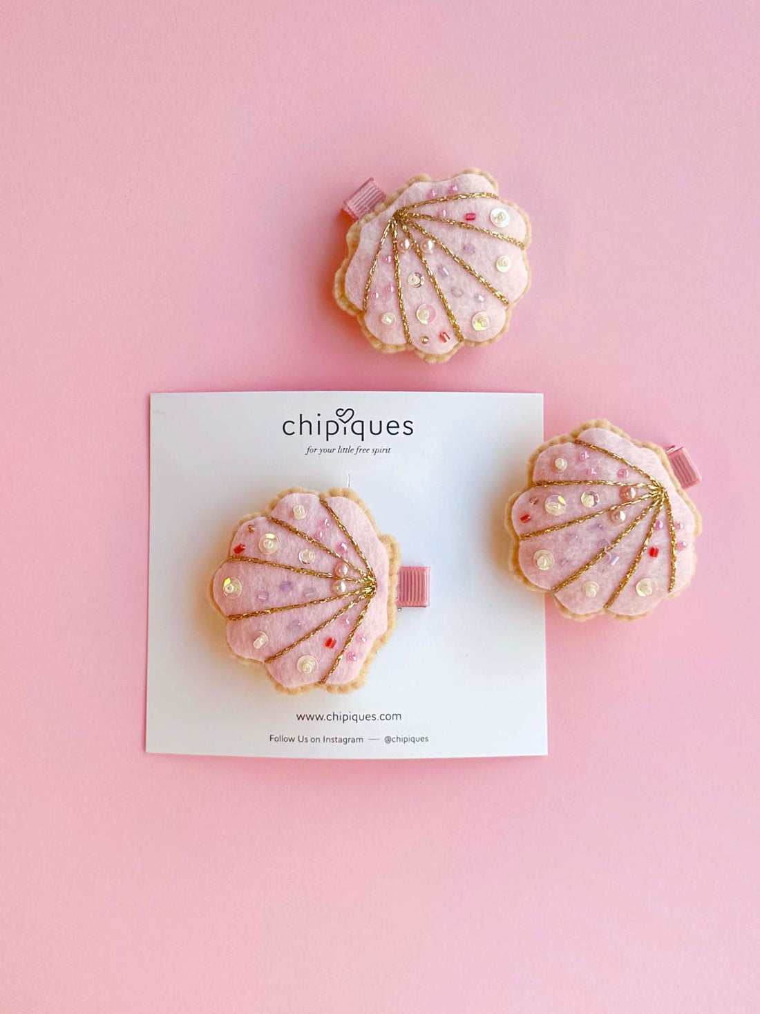 Pembe Boncuk Islemeli Dolgulu Deniz Kabuğu Keçe Toka