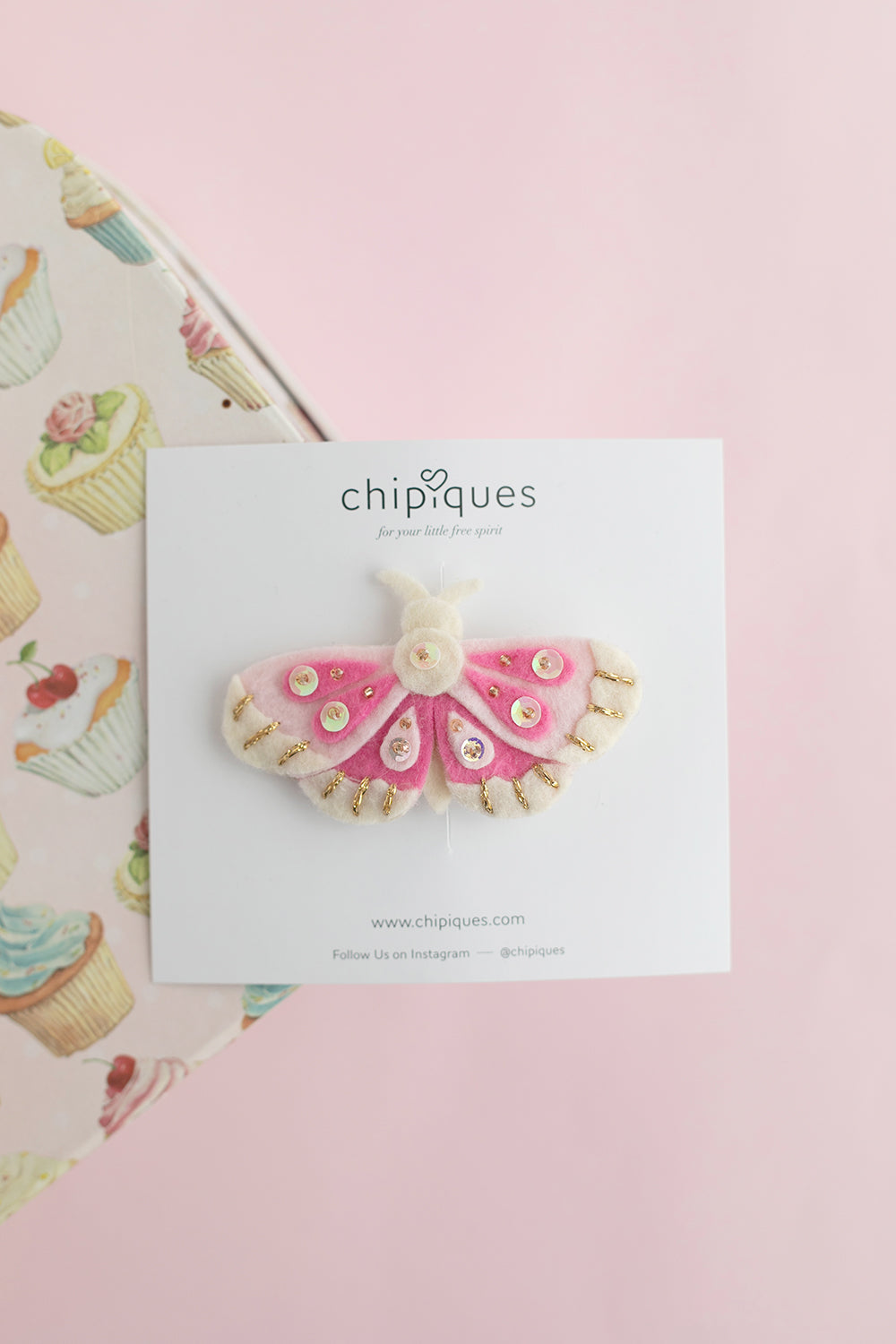 Payet ve Nakış İşlemeli Kelebek Figürlü Pembe Keçe Toka