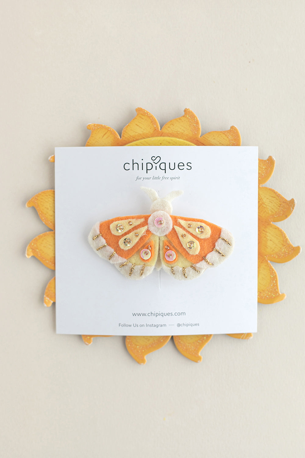 Payet ve Nakış İşlemeli Kelebek Figürlü Turuncu Keçe Toka