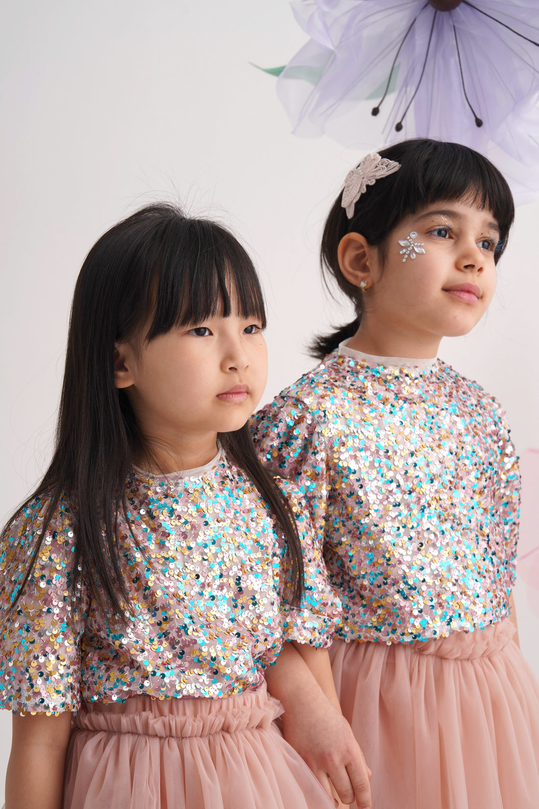 Pastel Hologram Payetli Alt Ust Etek Takim Set