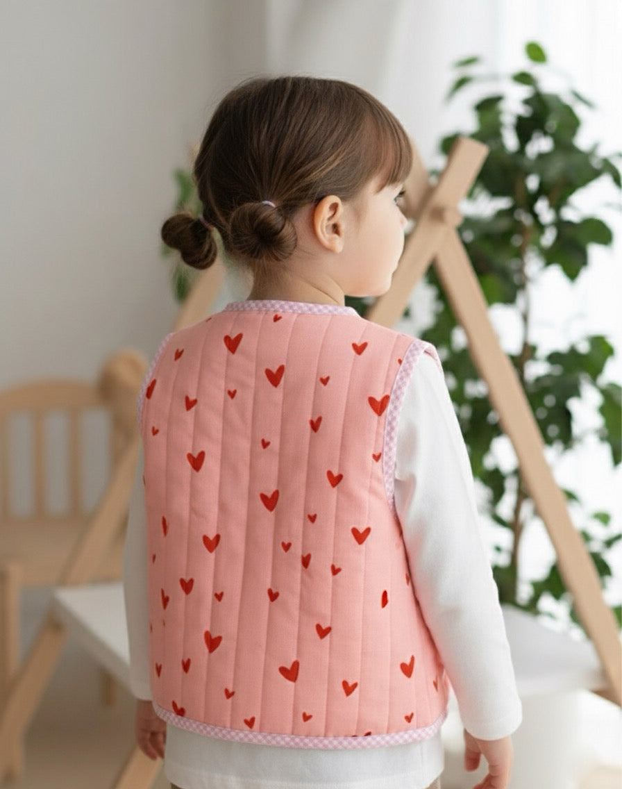 Çift Katlı Kalp Desenli Müslin Kapitone Yelek