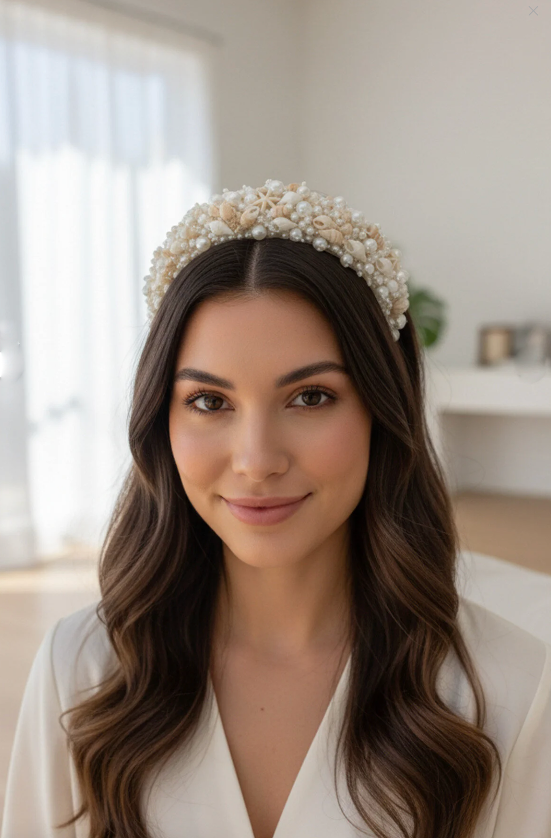 Deniz kabuğu ve inci İşlemeli Büyük Yetiskin Taç