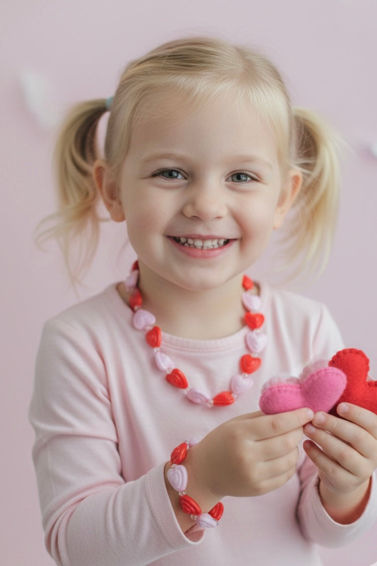 Kalp Formlu Mika Boncuk Kolye & Bileklik Seti – Çocuk Takı Seti