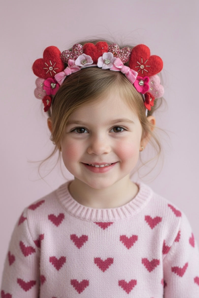 Kalp Figürlü Boncuk İşlemeli Keçe Love Taç