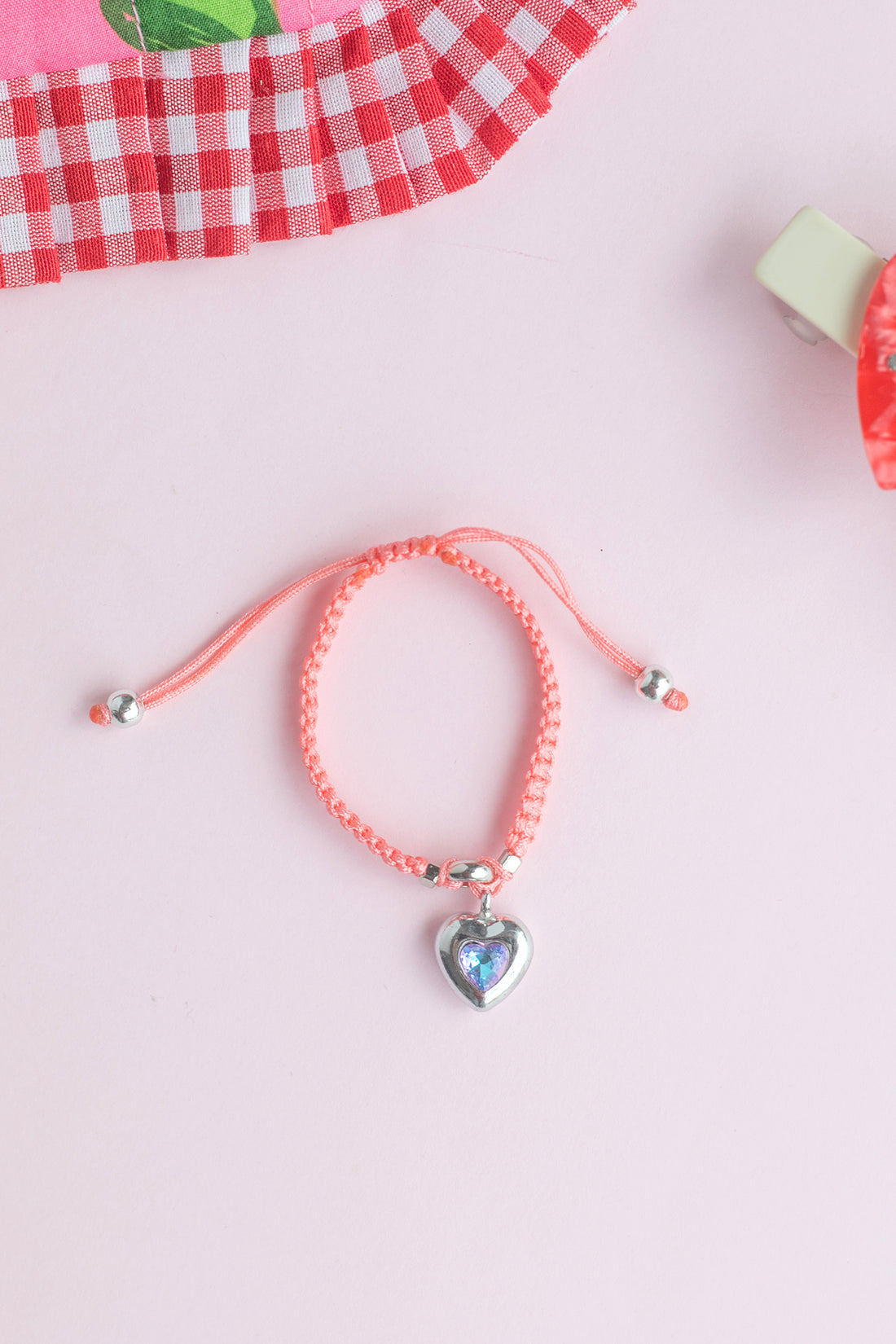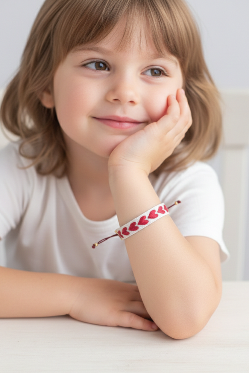 Kalp Motifli Dokuma Çocuk Bileklik – Ayarlanabilir İpli El Yapımı Bileklik