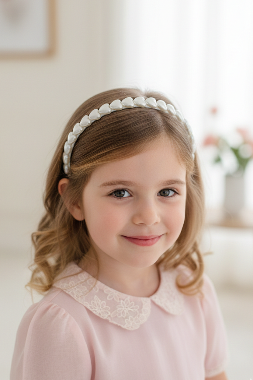 İnci Kalp Taç – Kalp Formlu İnci Boncuklu Çocuk Zarif Aksesuar