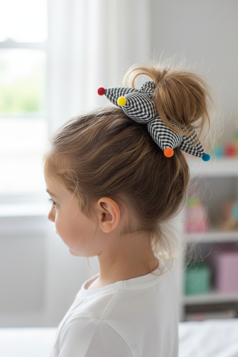 Siyah Potikare Desenli Yıldız Scrunchie Toka – Elyaf Dolgulu 3D Yıldız Lastik Saç Tokası