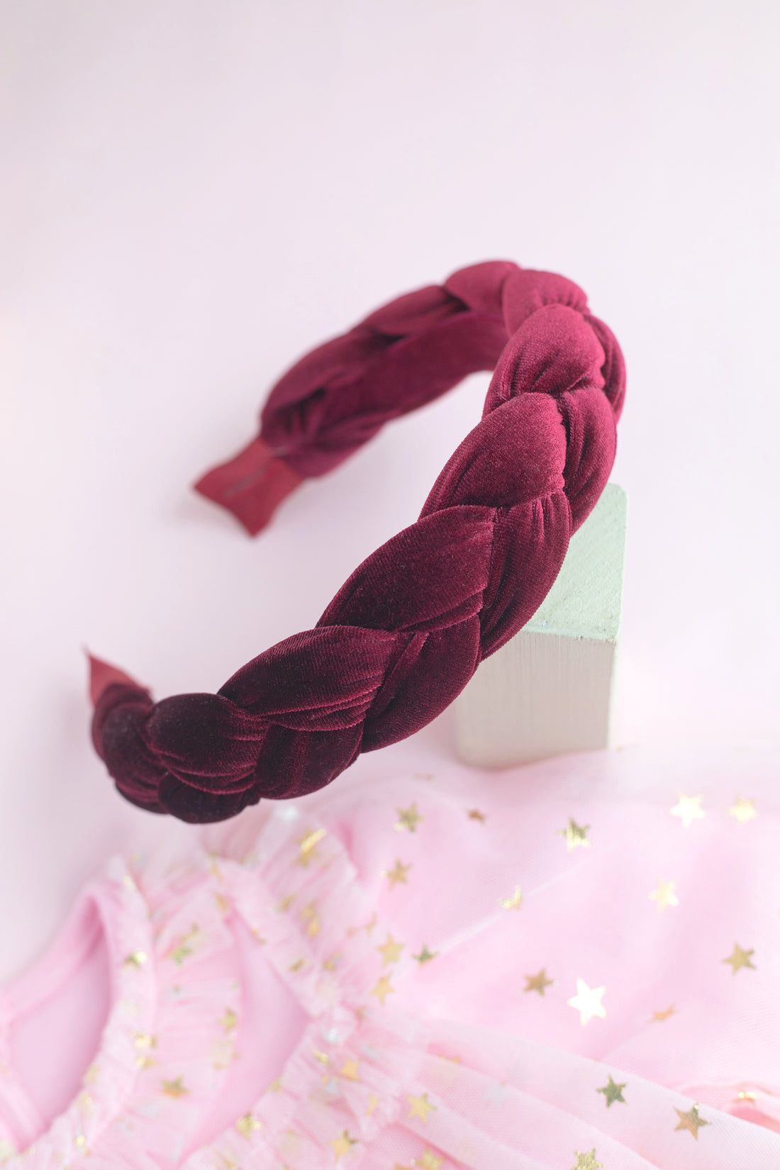 Kalın Örgülü Bordo Kadife Taç – Yetişkin Şık & Konforlu Taç