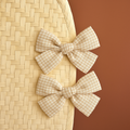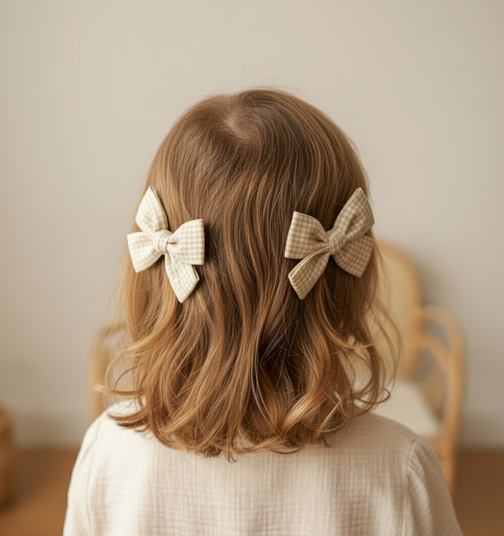 Bej rengi ekose desenin sıcak ve enerjik havasını taşıyan bu balerin fiyonk klips seti, pamuklu yapısıyla hem konforlu hem de şık bir kullanım sunar. El yapımı dokunuşlarla hazırlanmış fiyonklar, günlük kombinlere renk ve neşe katarken, sağlam klips mekanizması sayesinde saçlarda sabit durur. Kız çocuklarının hem okul hem de günlük stiline tatlı bir dokunuş katar. 🌟