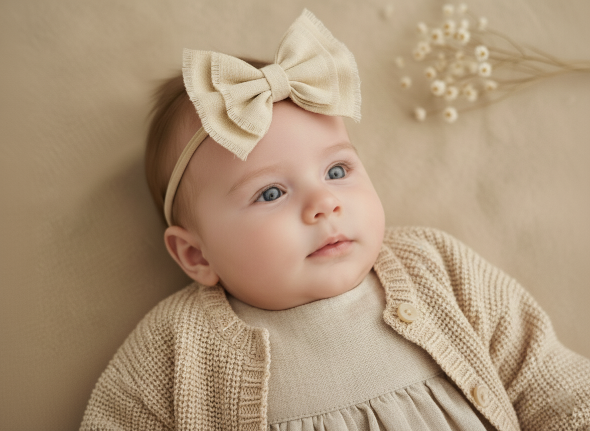 Bebekler icin Ham Keten Fiyonk - Bebek Sac Bandi