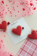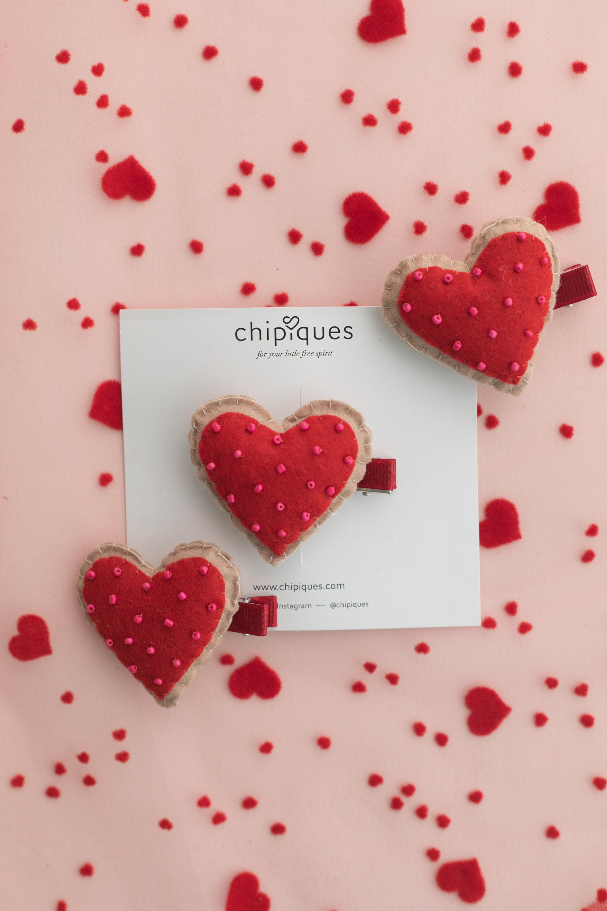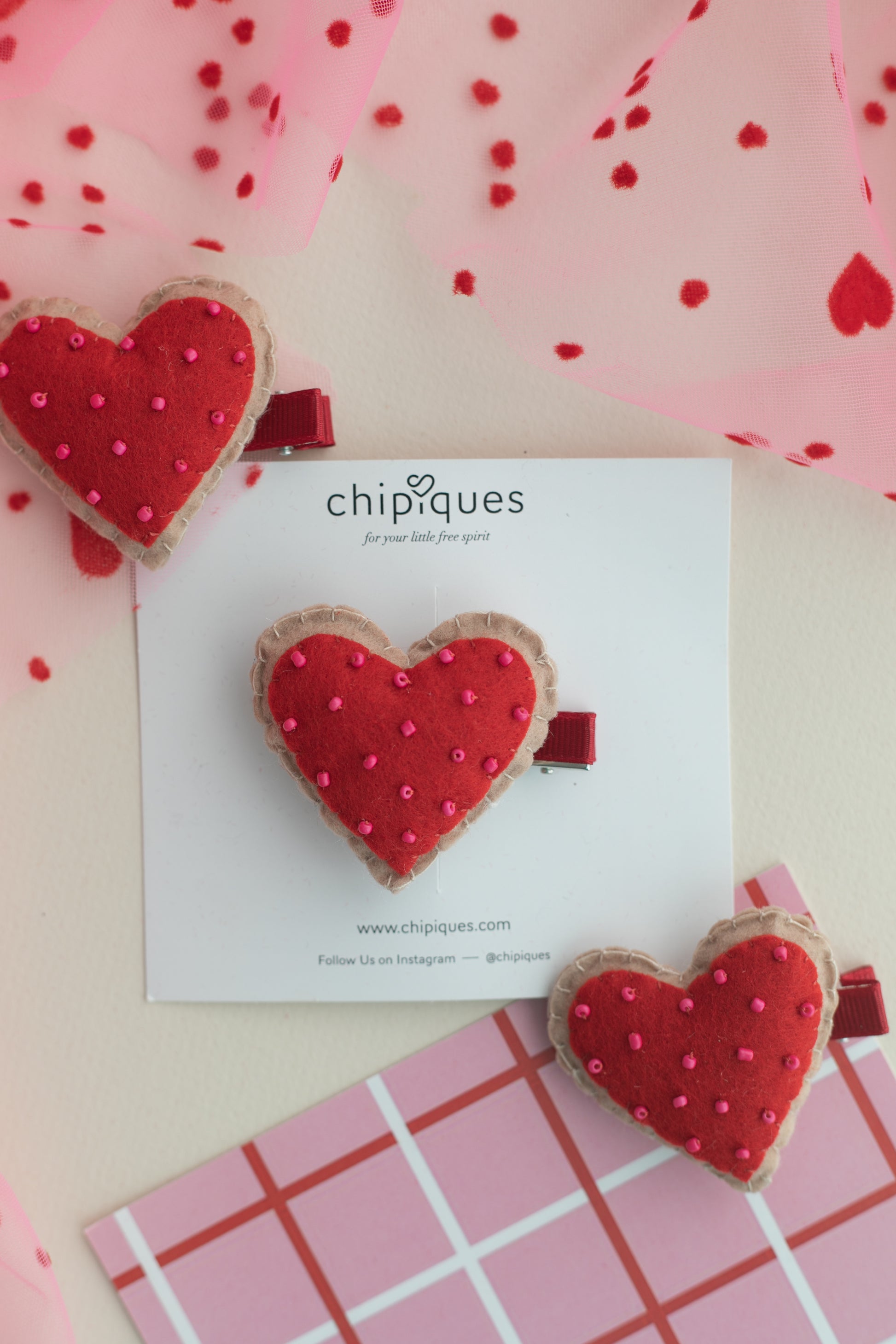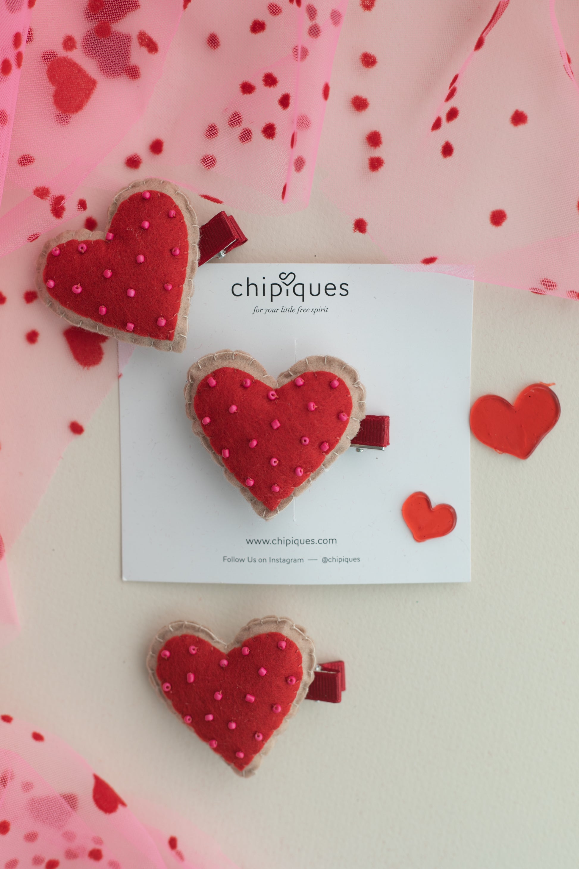 Kırmızı Boncuk Islemeli Pembe Keçe Kalp