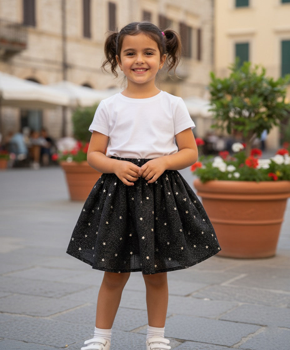 Lame Yıldız Baskılı Siyah Müslin Etek