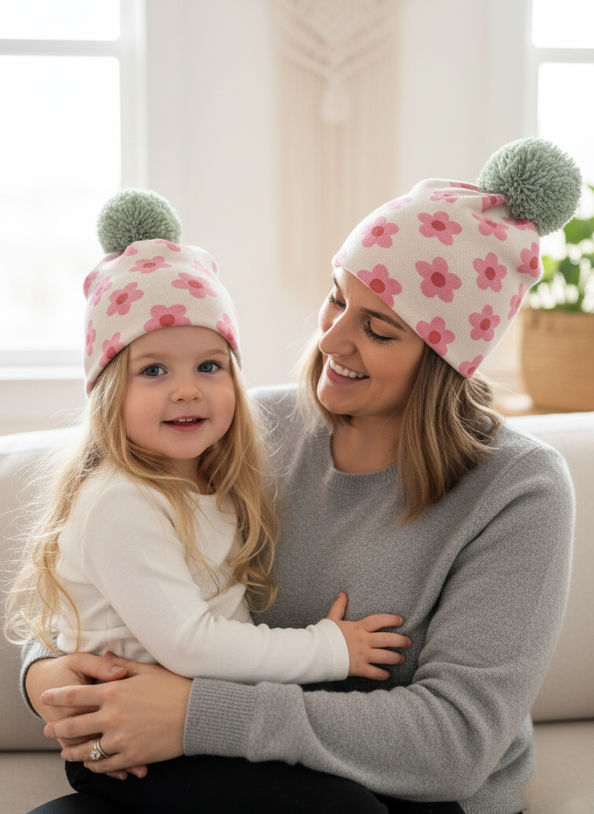 Retro çiçek Desenli orta Kalın Kaşkorse Bere