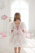 Bu özel gün elbisesi, hologram efektli payetleriyle her adımda parıldar. Göz alıcı balon kolları, zarif siluetiyle buluşurken; sırt kısmındaki çapraz ip detayları elbiseye sofistike bir dokunuş katıyor.