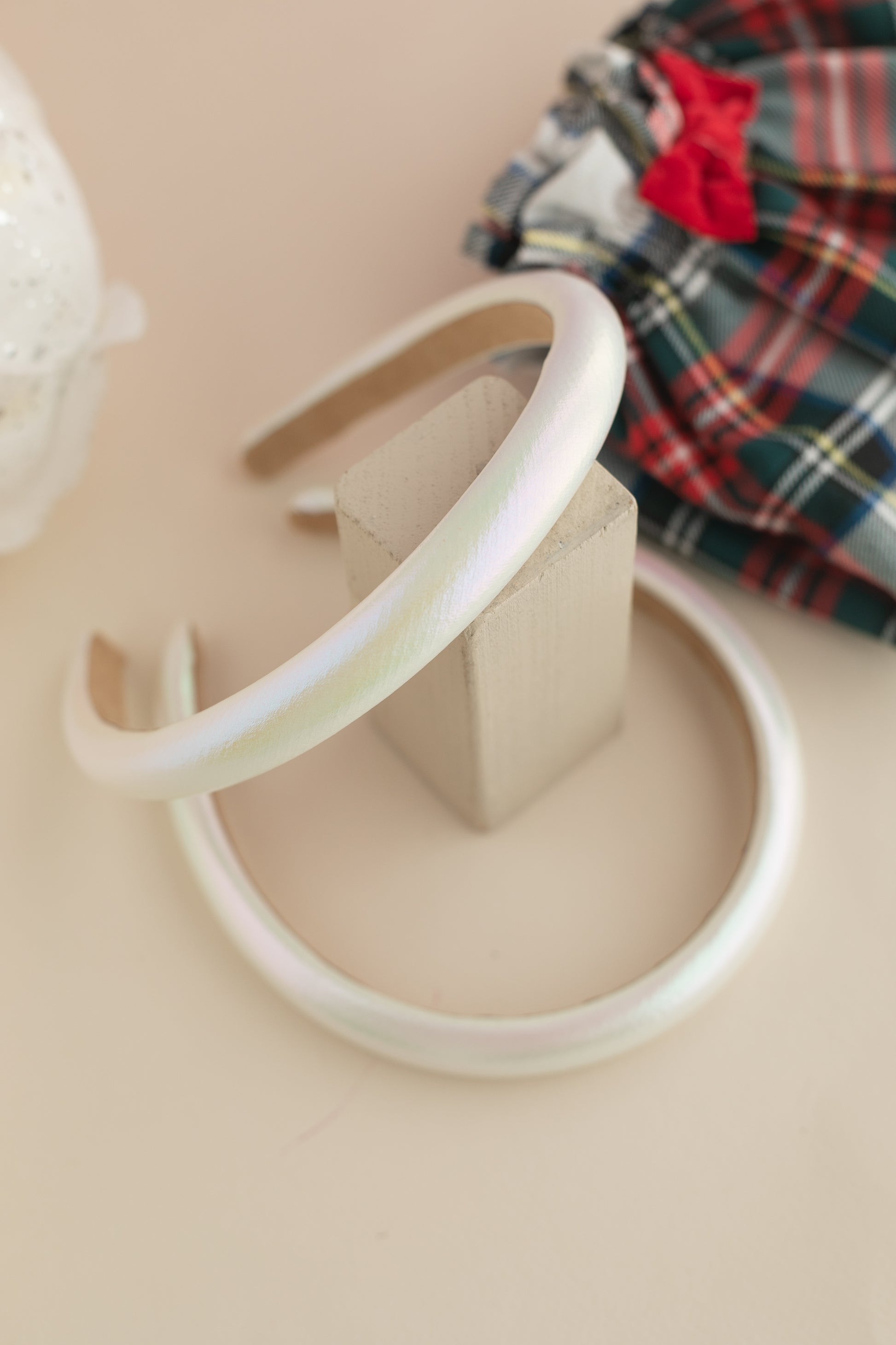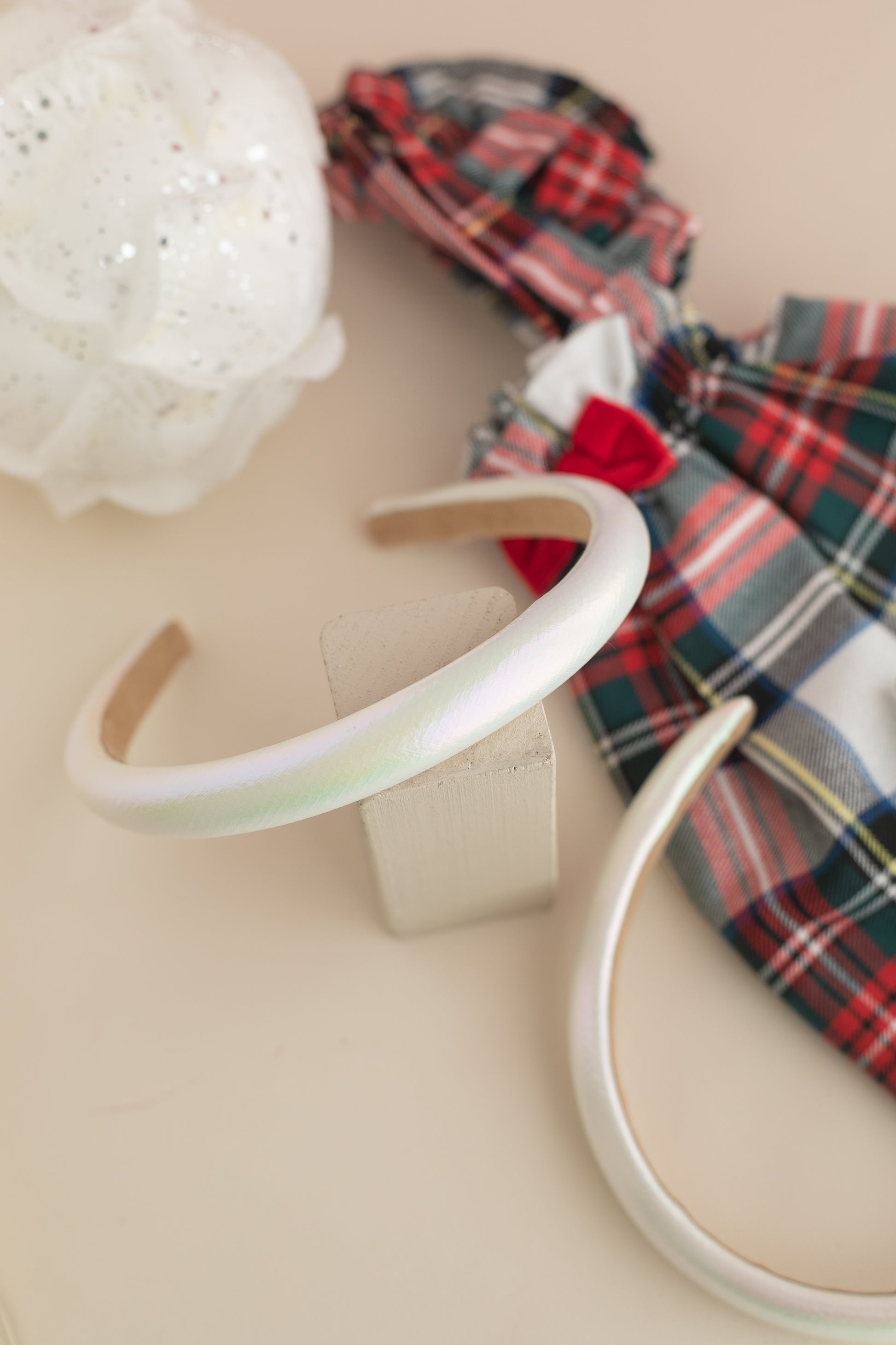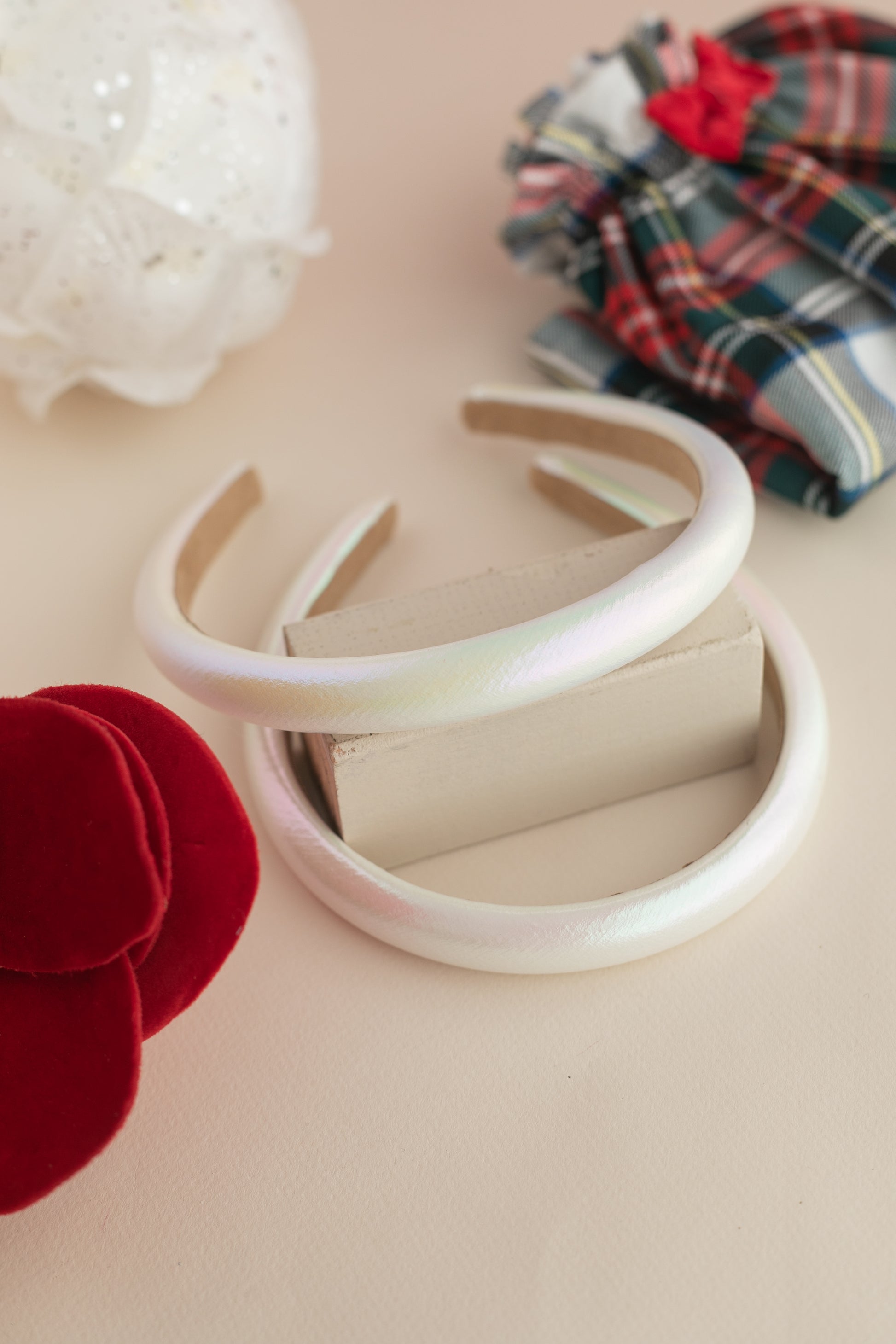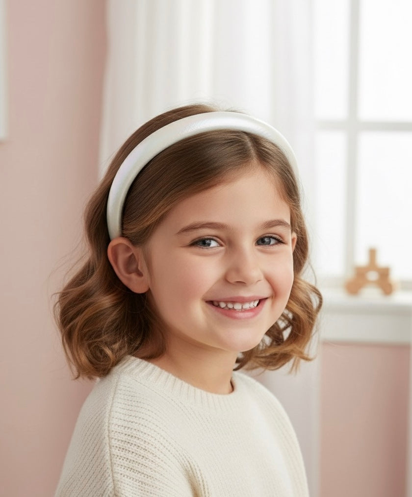 Parlak saten kumaşıyla hem günlük kombinlere hem özel günlere zarif bir dokunuş katan bu hologram efektli taç, ışığa göre renk değiştiren yumuşak sedef görünümüyle dikkat çeker.