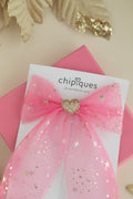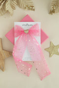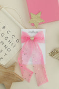 Zarif tasarımıyla dikkat çeken Varaklı Yıldız baskılı Tül Kuyruklu Balerin Klips Toka, minik prenseslerin özel günlerinde ışıltılı bir tamamlayıcı olur.