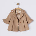 Kadife Fiyonk Detaylı Askılı Pileli Etekli Jile ve Kaşe Palto Takım
