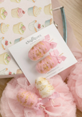 - Minik prensesler için özel olarak tasarlanan 2’li el işlemesi fiyonk detaylı keçe pamuk şeker toka seti, el yapımı zarif tasarımıyla saçlara tatlı bir dokunuş katıyor! 🎀✨ Yumuşak keçe kumaşı, hassas saçlara zarar vermeden konforlu bir kullanım sunarken, fiyonk detayları sevimli ve şık bir görünüm sağlar. El işçiliğiyle özenle tasarlanan tokalar, günlük kombinleri tamamlamak için mükemmel bir seçenektir.