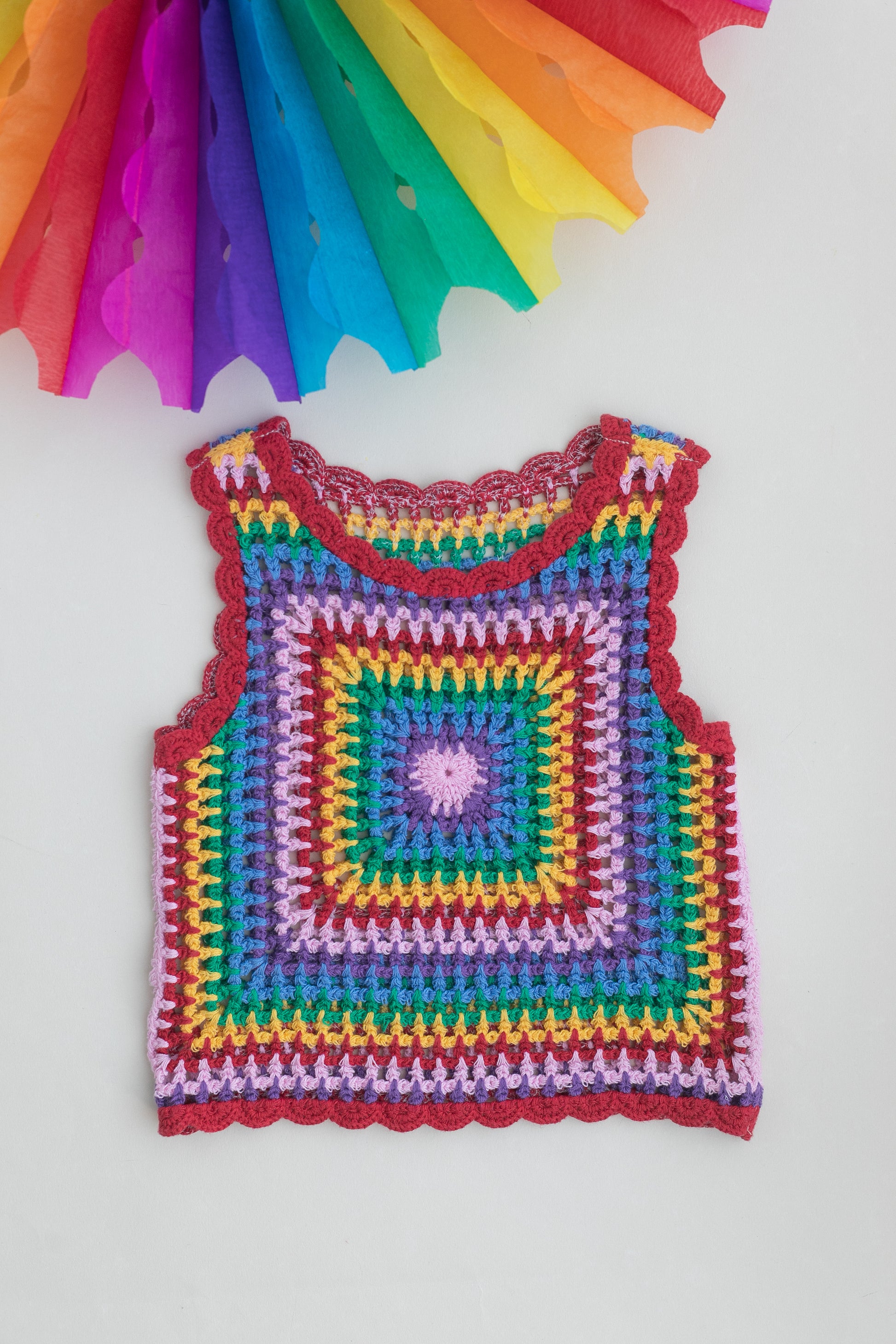 🌈 Rengarenk Örgülü Crochet Kolsuz T-shirt – Yazın Enerjisini Taşıyan El Örgüsü Stil!