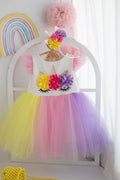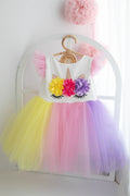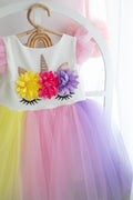 Renkli Tüllü Unicorn Elbise - Taç hediyeli