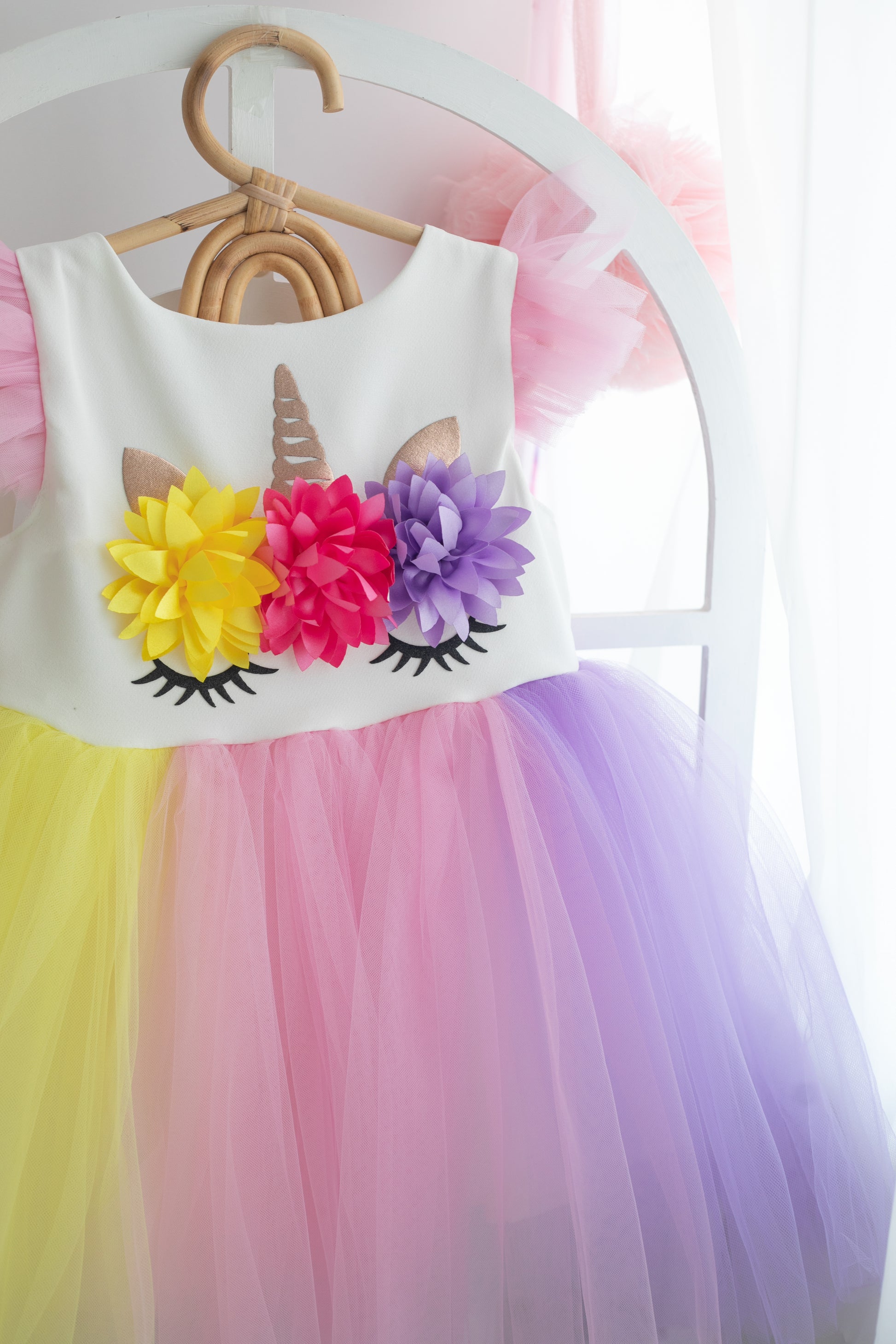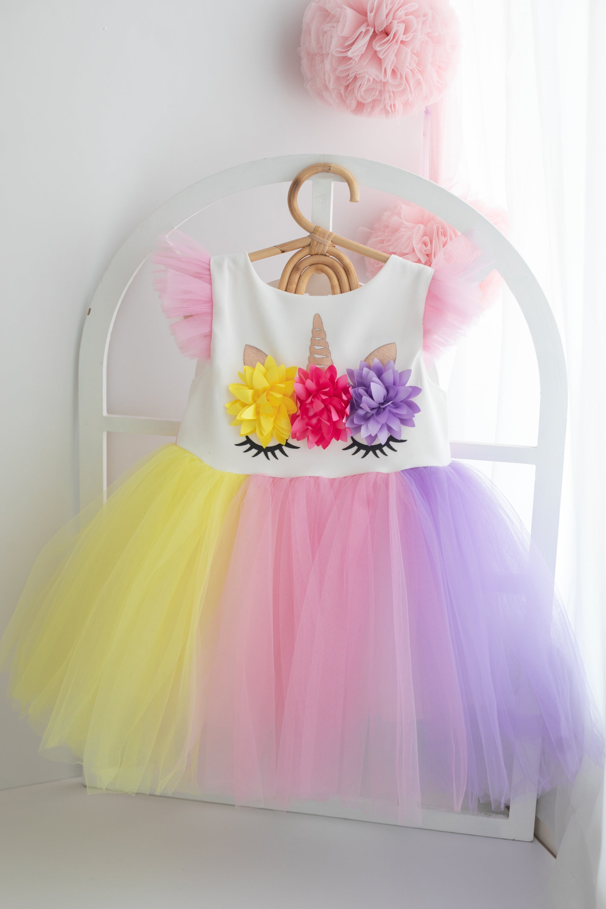 Küçük hayalperestler için tasarlanan Renkli Tüllü Unicorn Elbise, doğum günlerinde, özel kutlamalarda ve fotoğraf çekimlerinde adeta masallardan fırlamış gibi bir görünüm sunar.