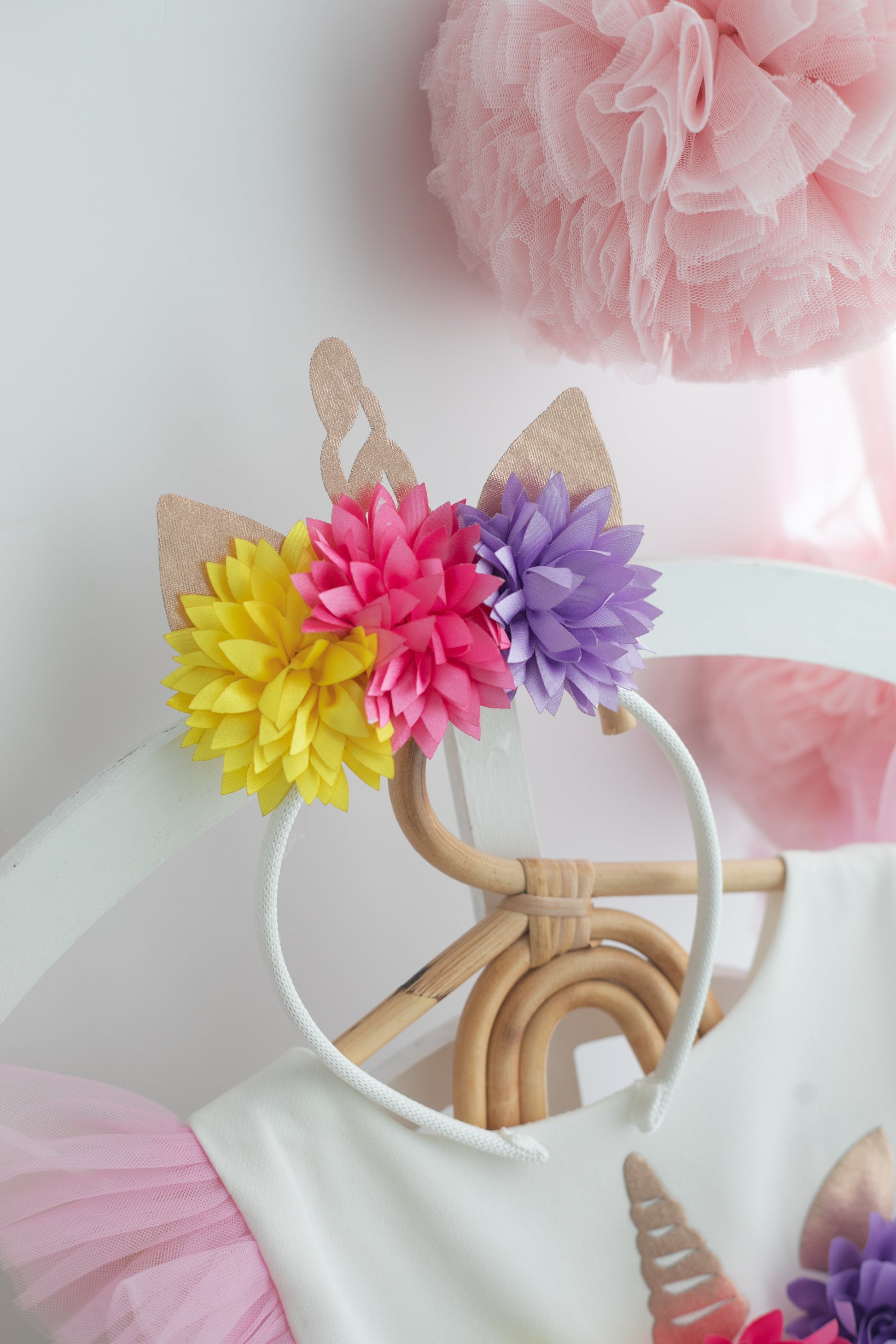 Renkli Tüllü Unicorn Elbise – Taç Hediyeli | Doğum Günü ve Özel Günler İçin Mükemmel Seçim
