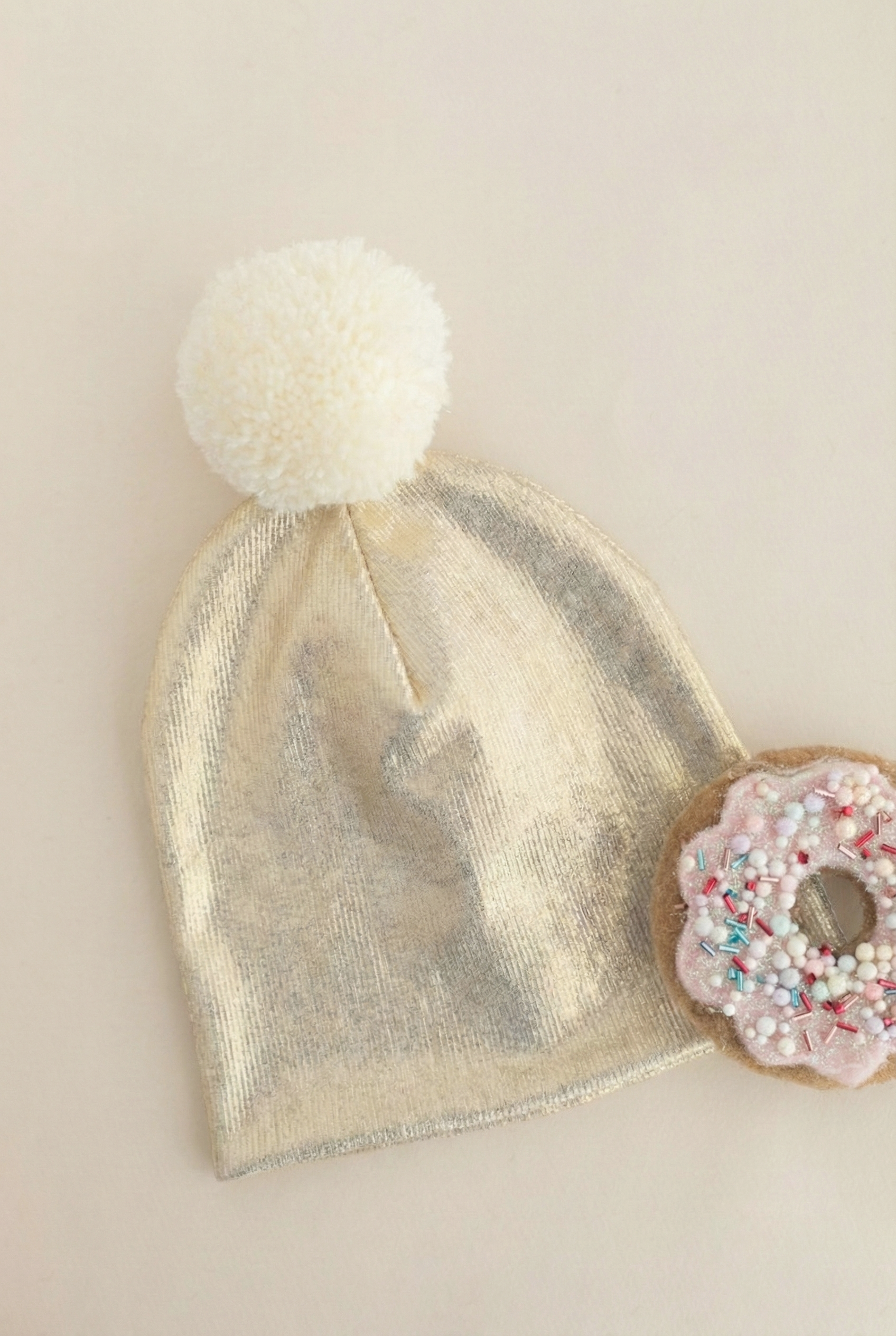Gold Varak Baskili Krem Ponpon Cift Katli LikrlI Penye Bere