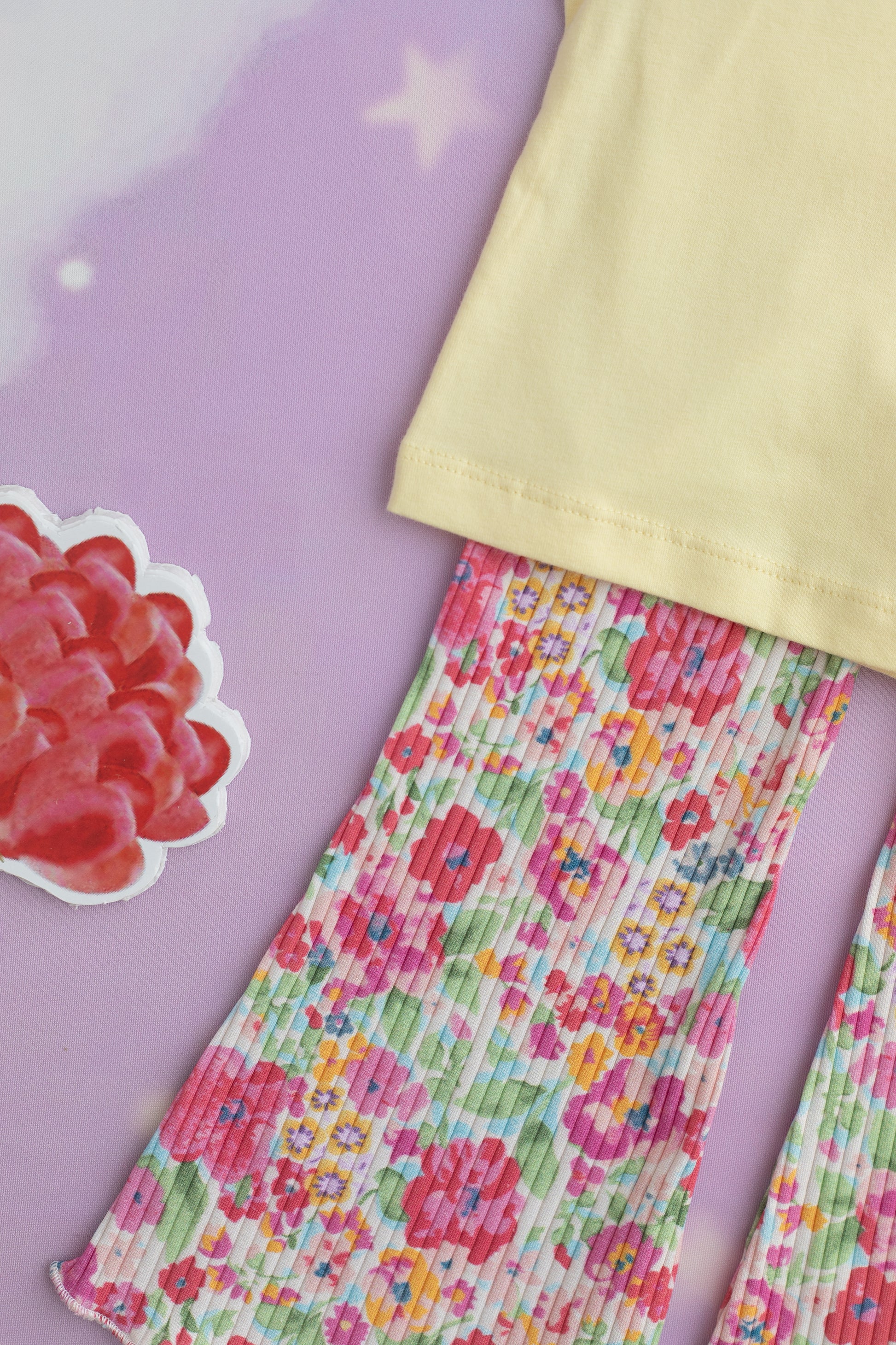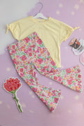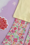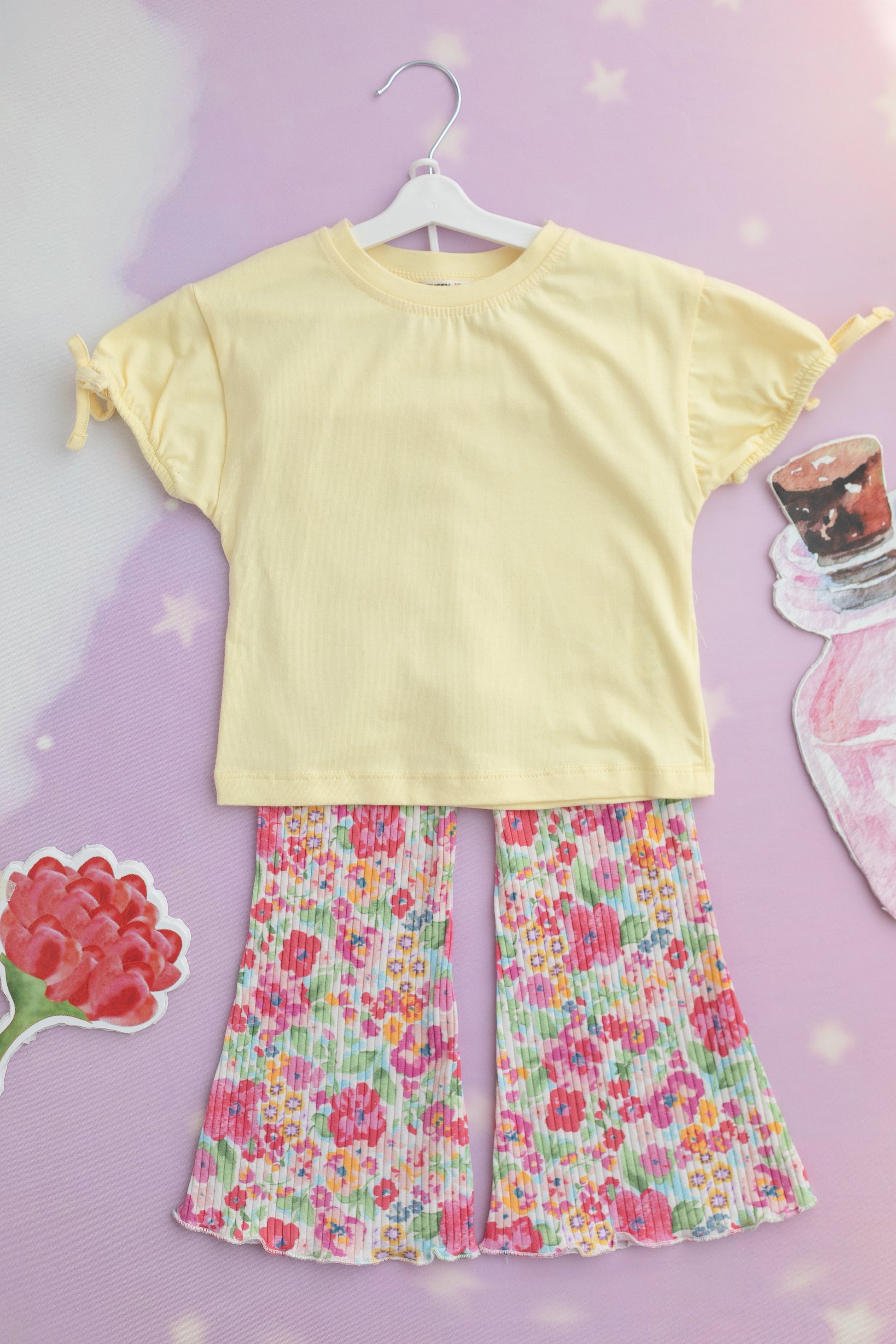 Canlı renkleri ve rahat kalıbıyla bu iki parçalı kız çocuk takımı, hem şıklık hem konfor sunuyor. Yumuşak pamuklu sarı tişört, enerjik havasıyla günlük kullanıma uygundur. Takımı tamamlayan sulu boya efektli çiçek desenli tayt ise esnek yapısıyla gün boyu hareket özgürlüğü sağlar.