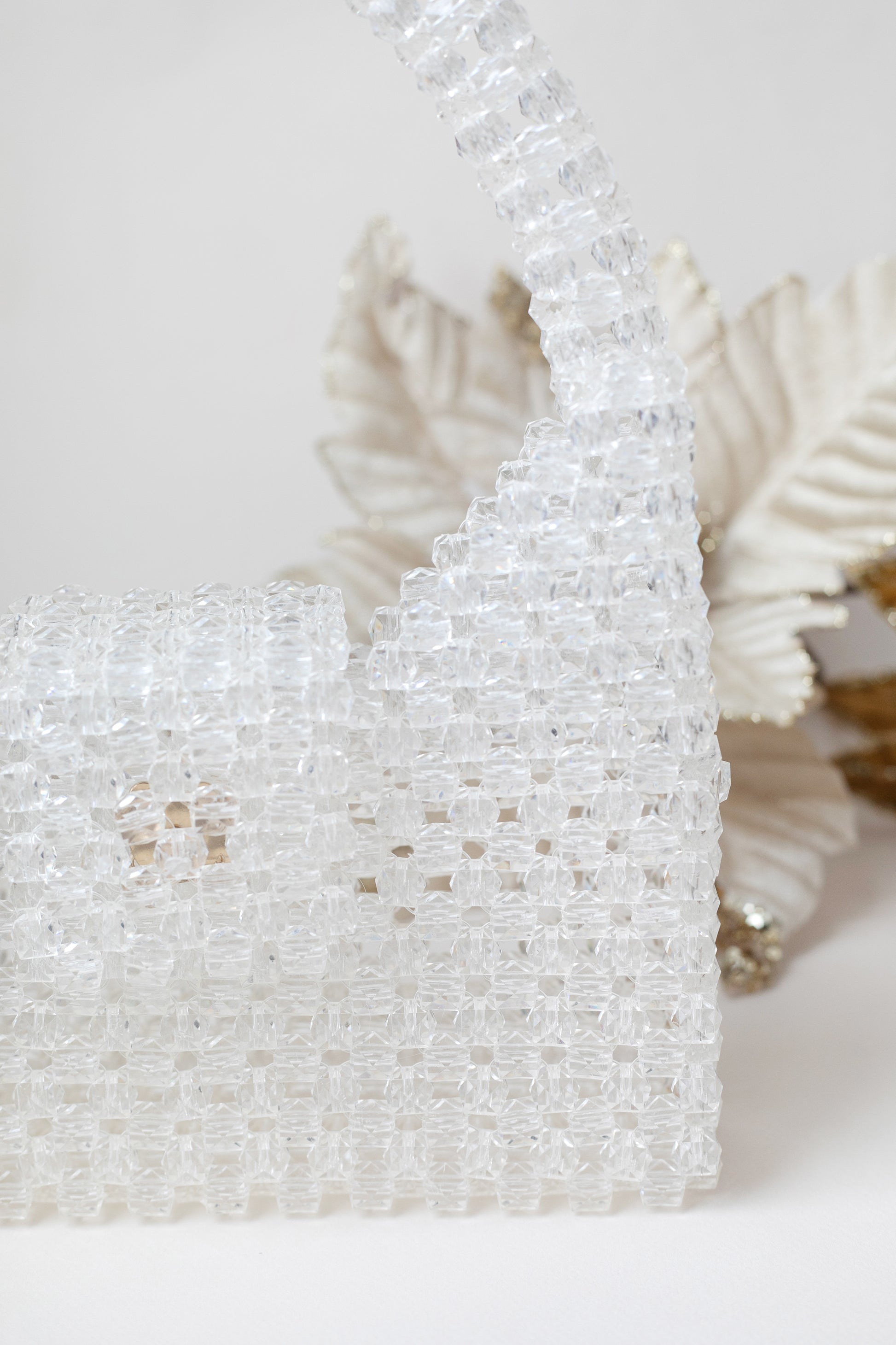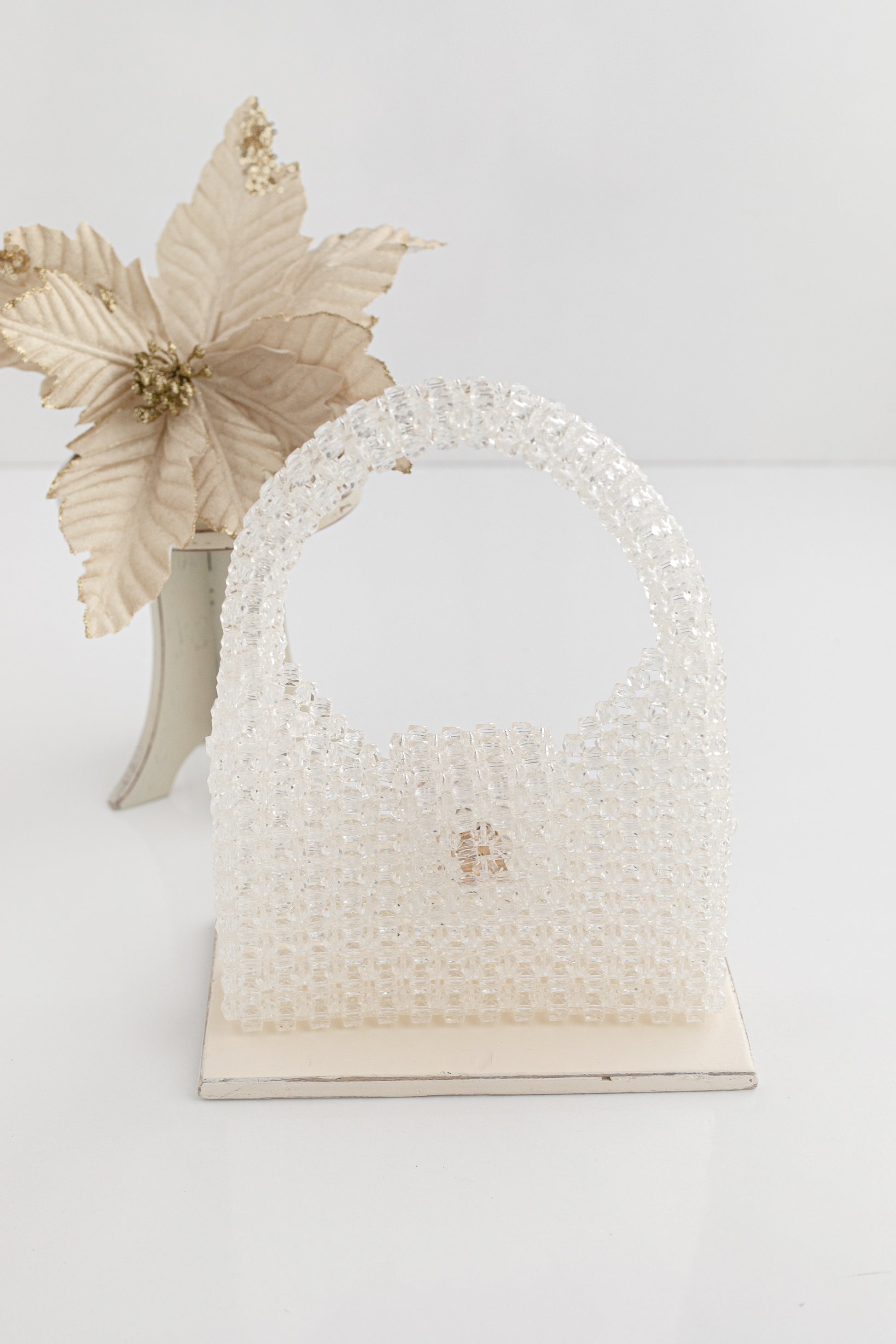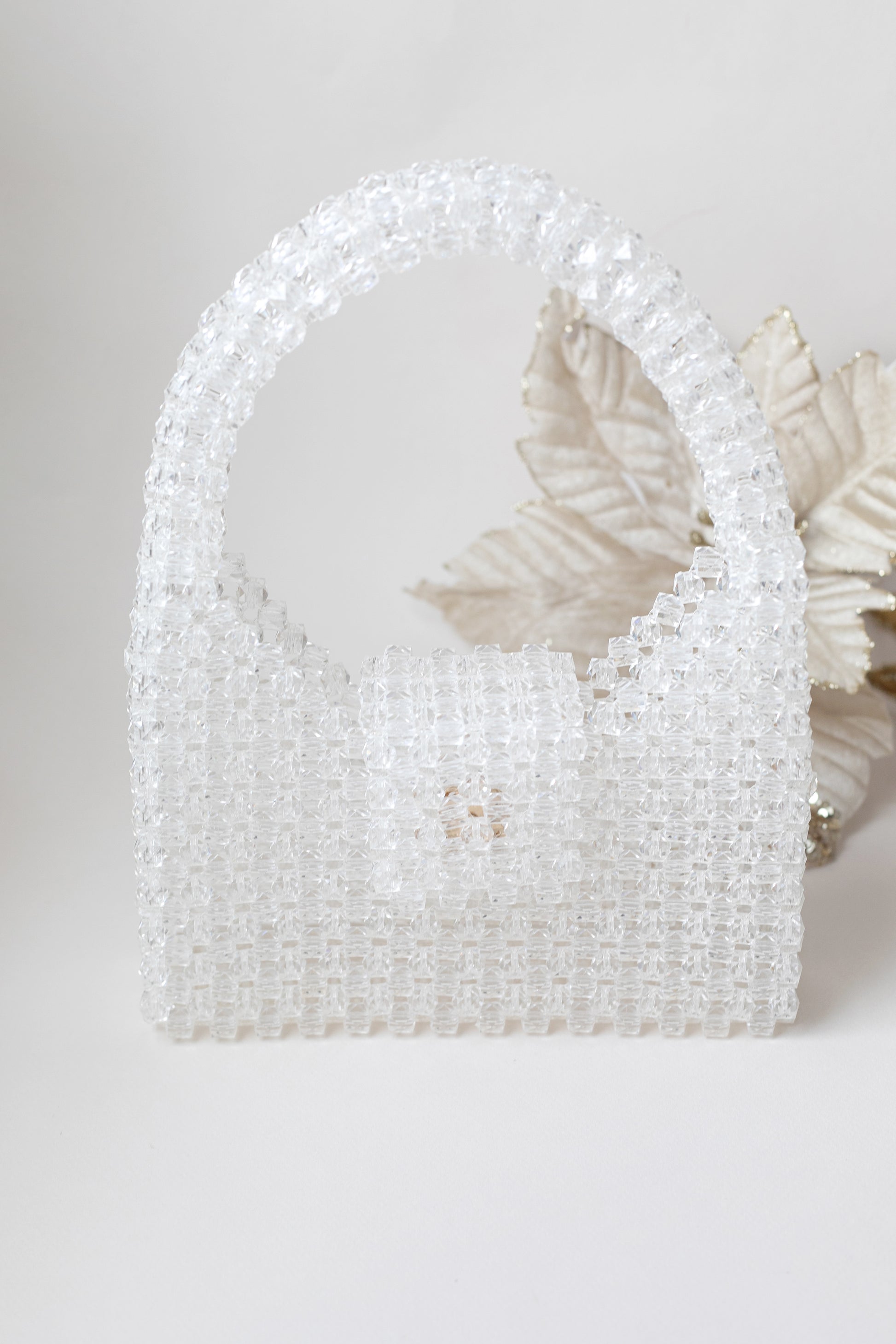 Seffaf Kristal Boncuk İşlemeli Mini Kapakli Yetiskin El Çantasi