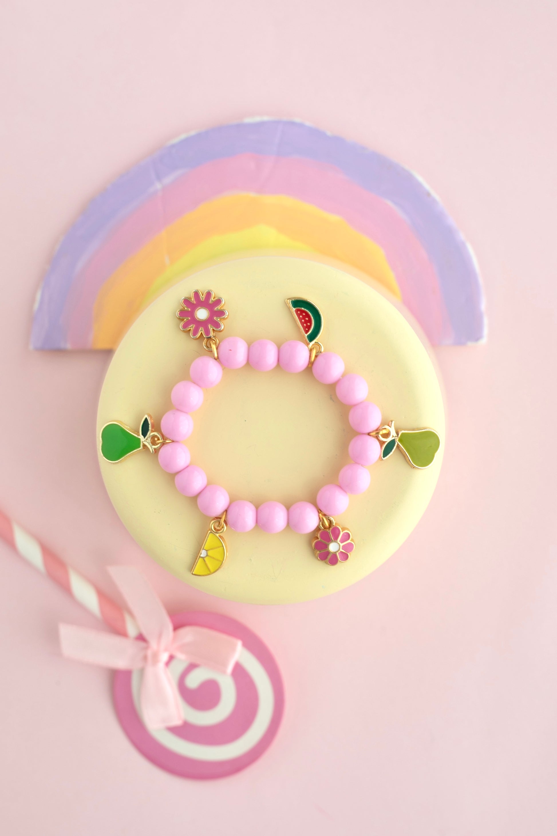 Seker Pembe Meyve Charmli Boncuk Bileklik