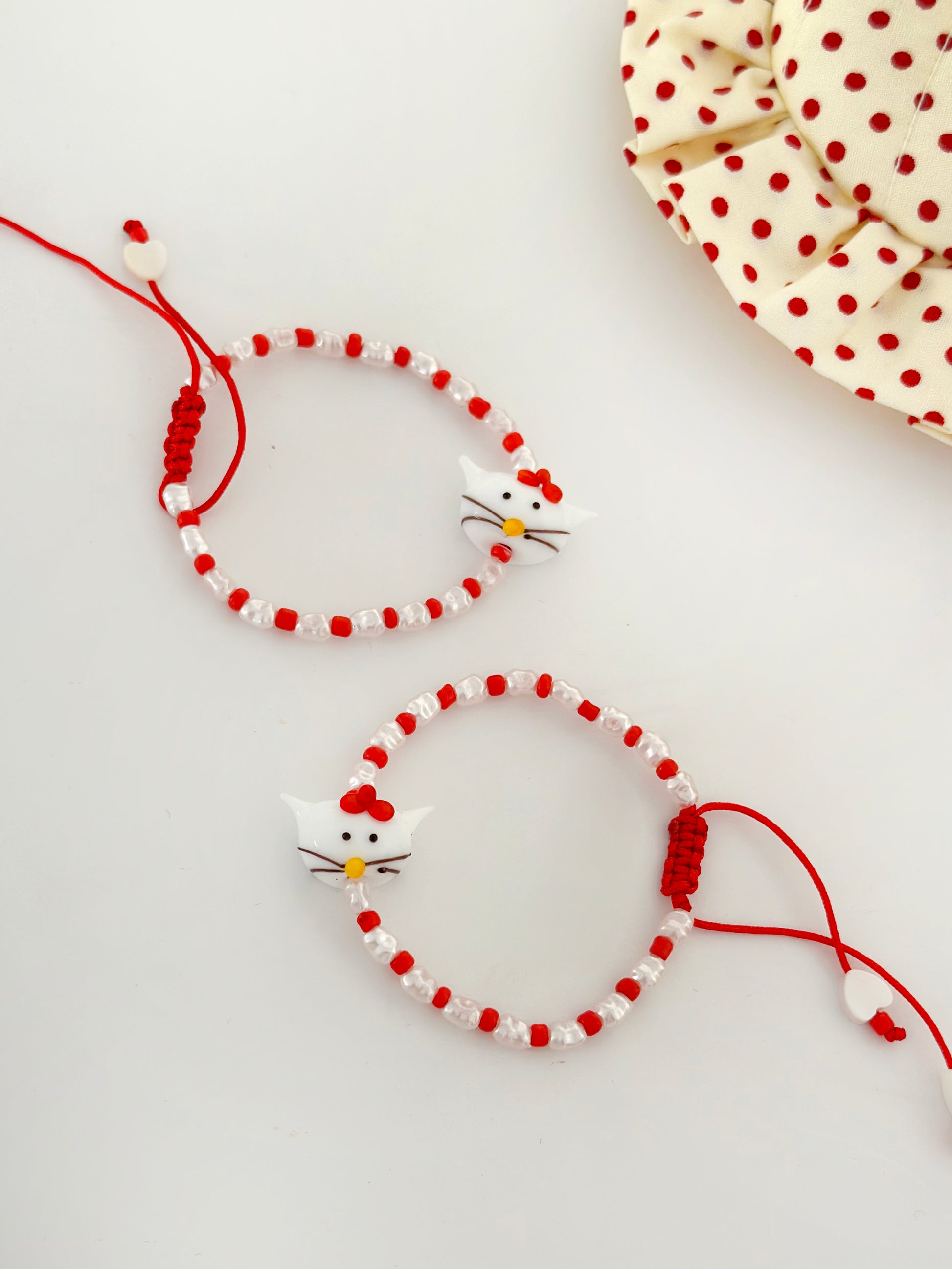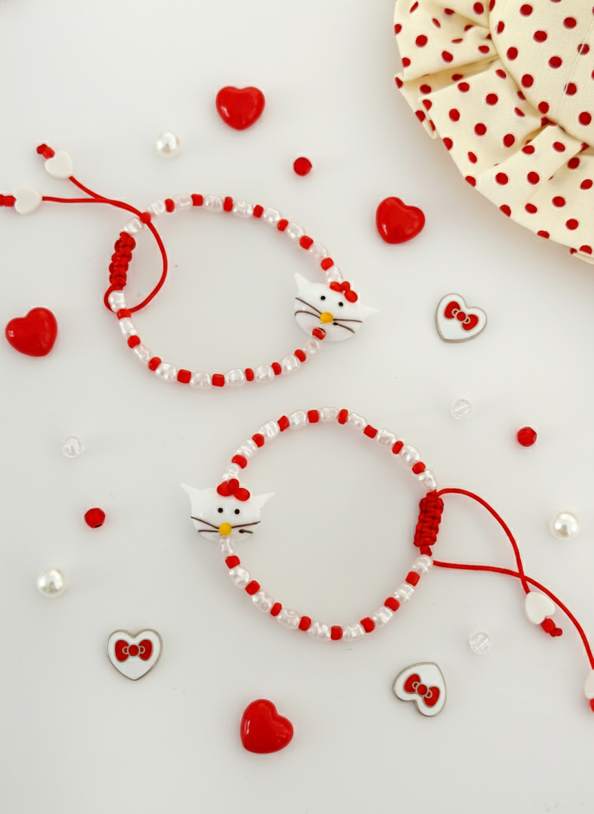 Kedi Figürlü Murano Cam Boncuk Sargılı Dizi Boncuklu Çocuk Bileklik
