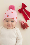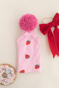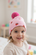 Cilek Desenli Pembe Ponponlu Cift Katli Likrali Ince Penye Bere