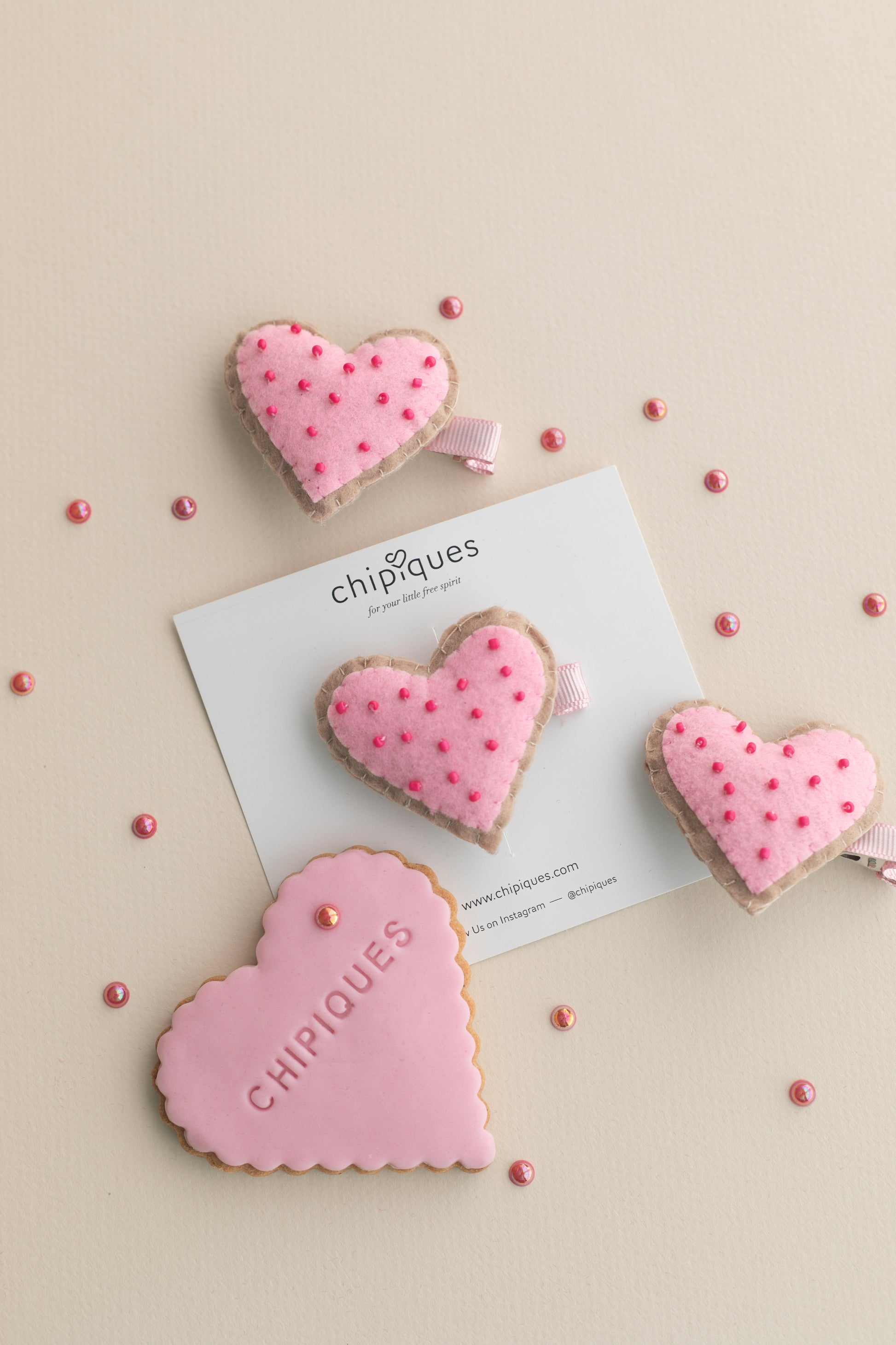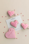 Pembe Boncuk Islemeli Kırmızı Keçe Kalp